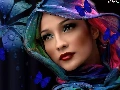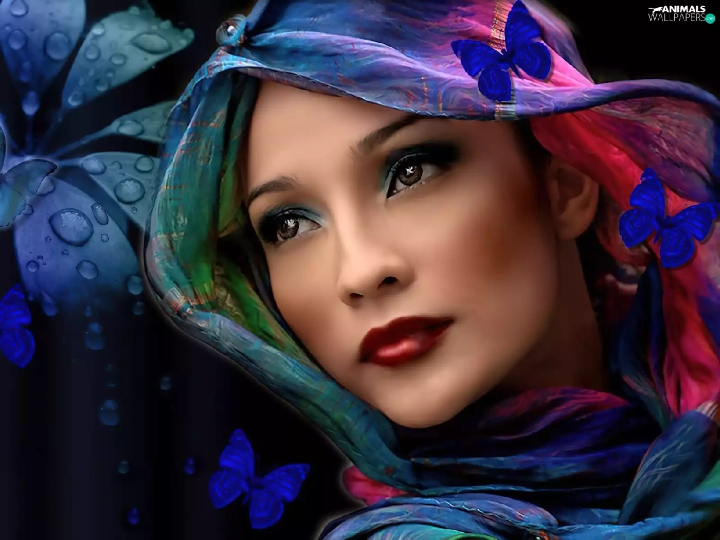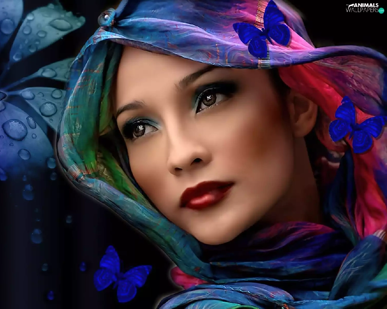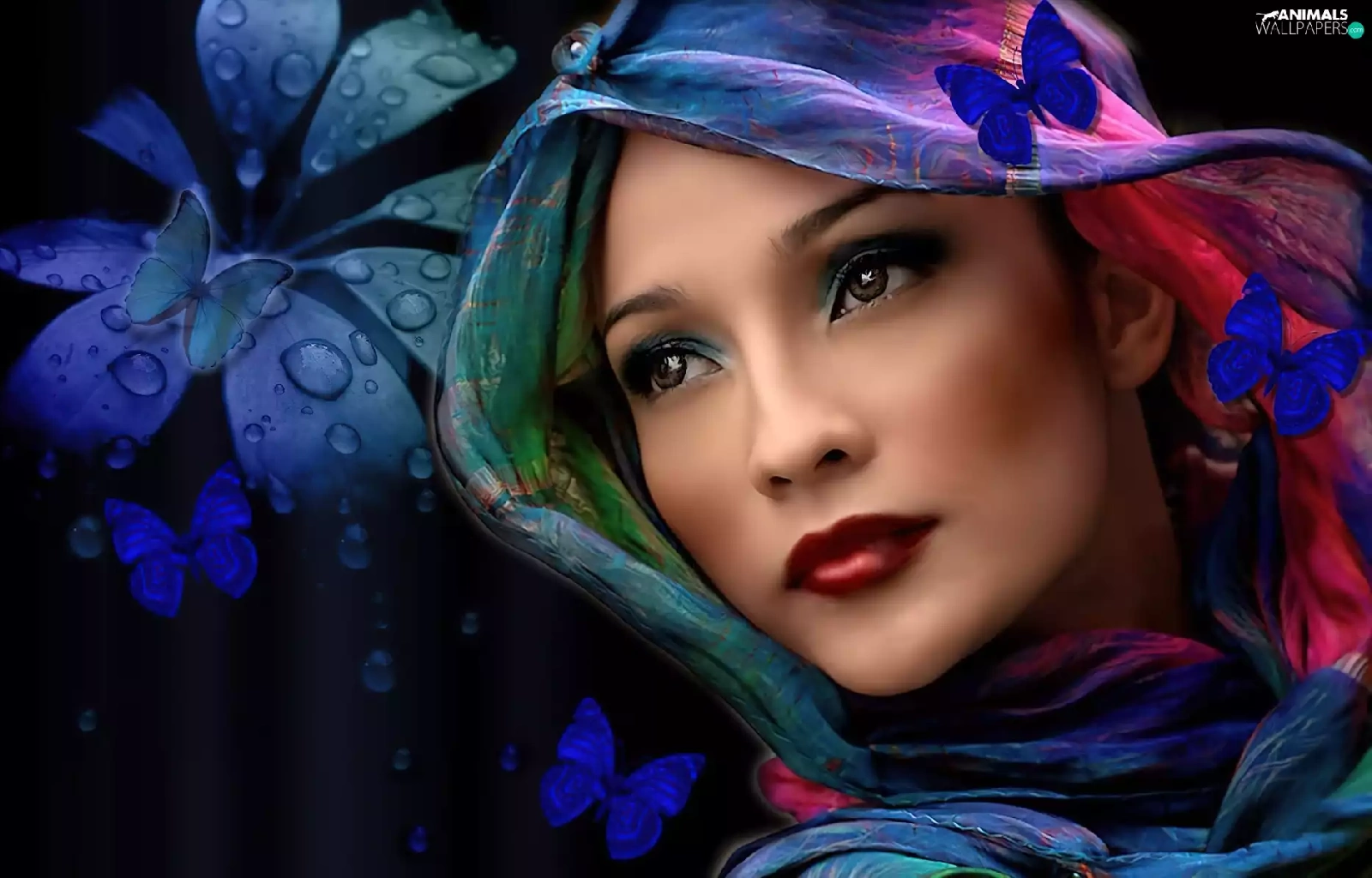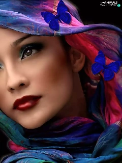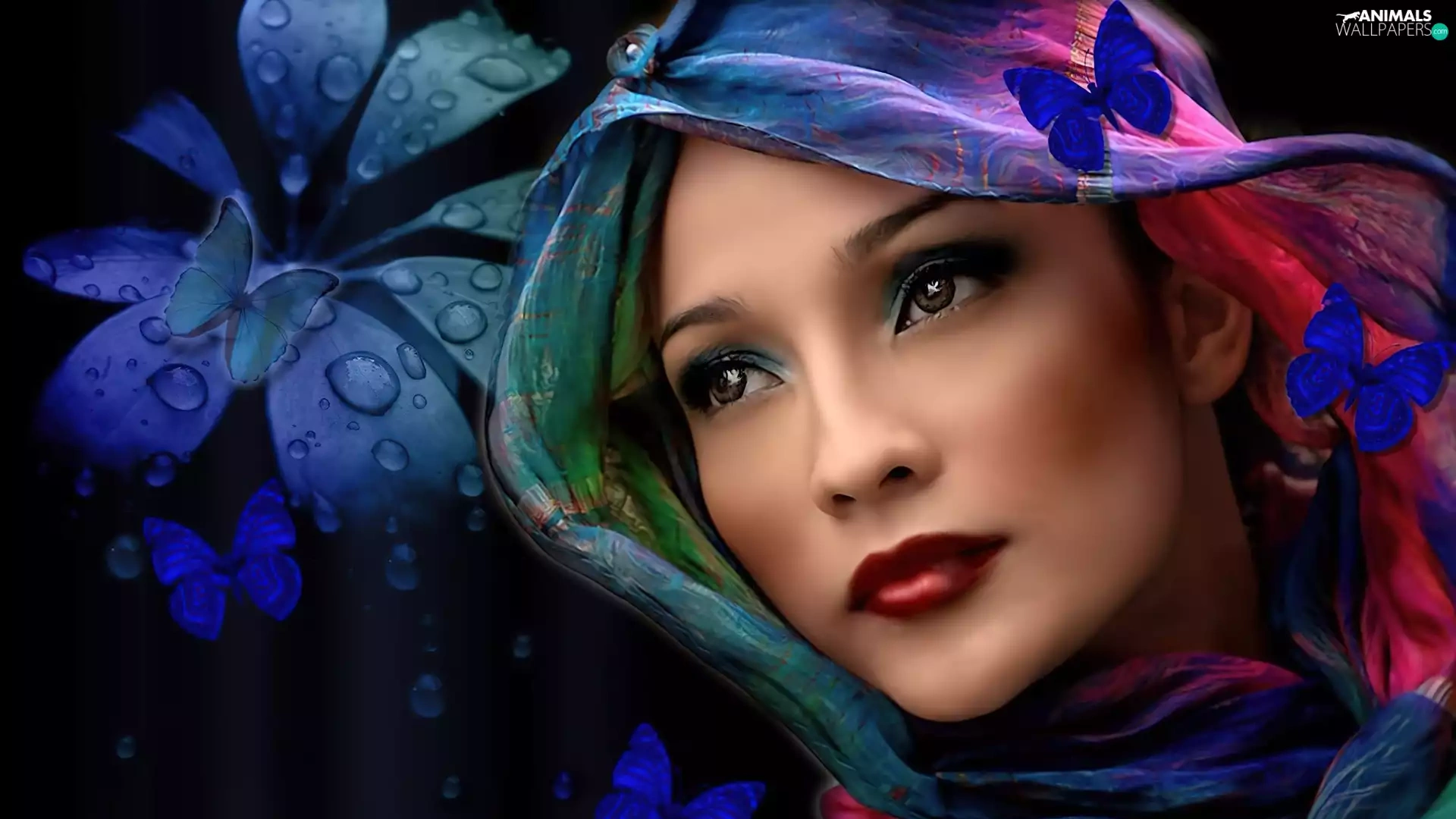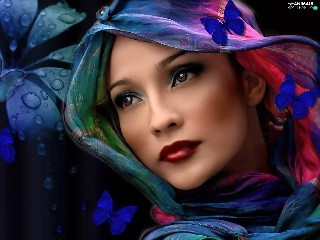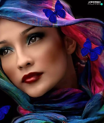 Colourfull Flowers, butterflies, shawl, make-up, Women