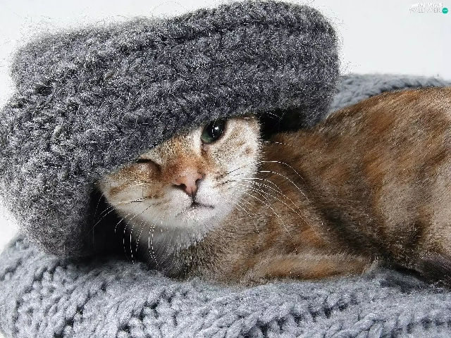 shawl, cat, Gray