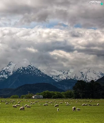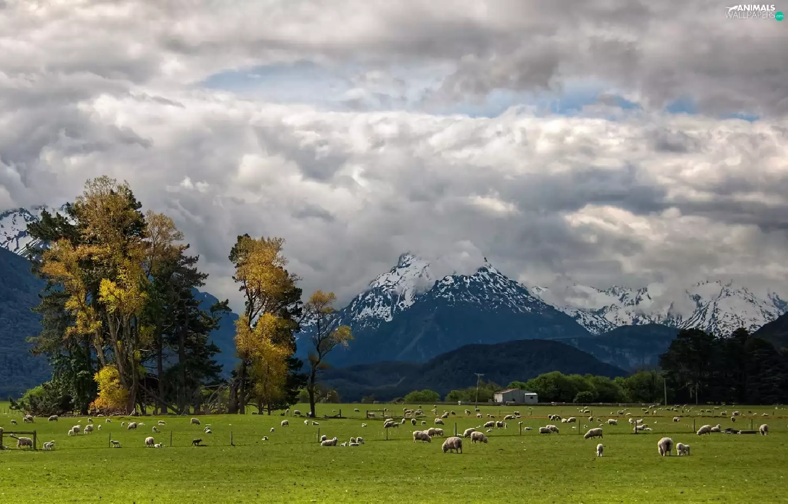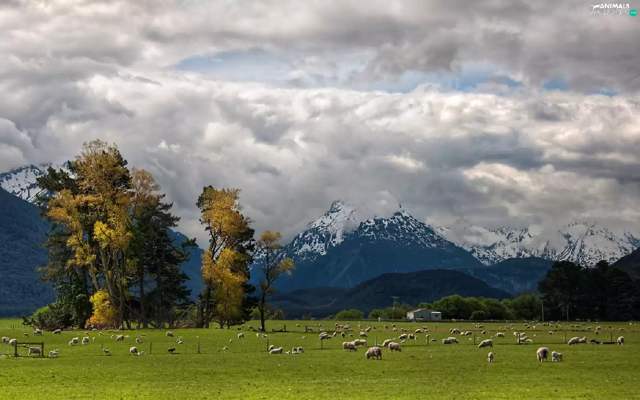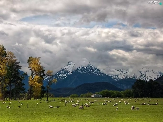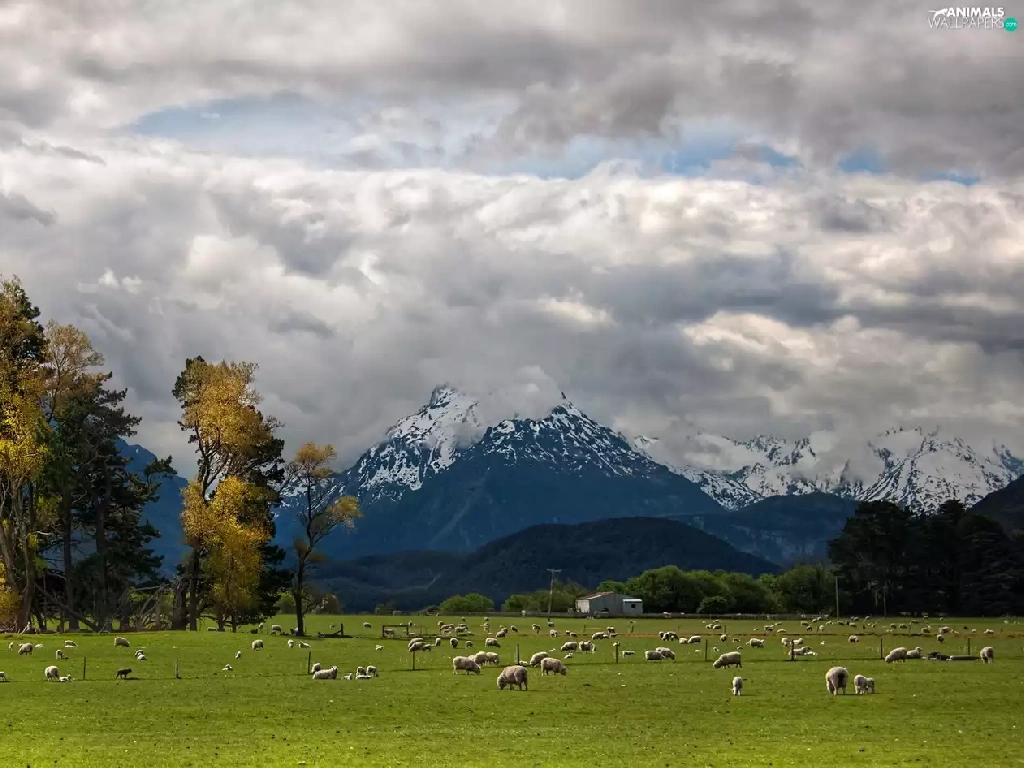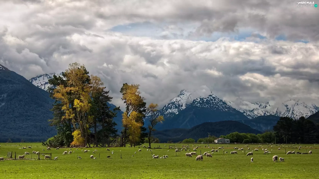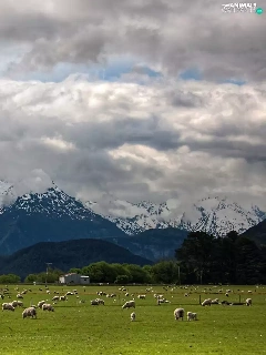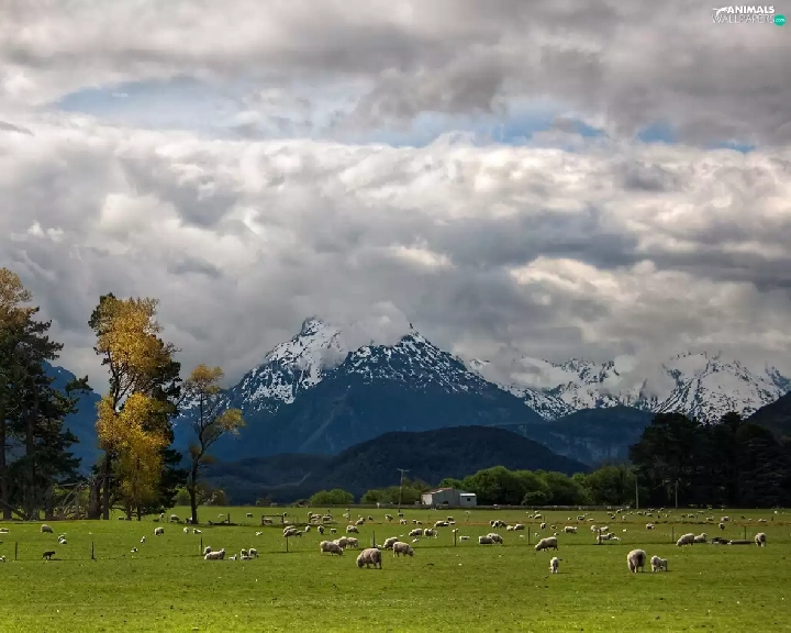 Mountains, pasture, New Zeland, Trey Ratcliff, Glenarchy, Sheep