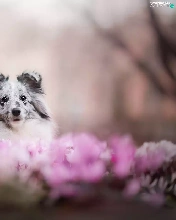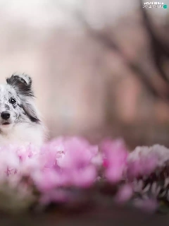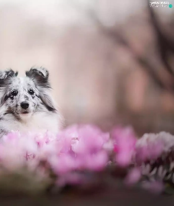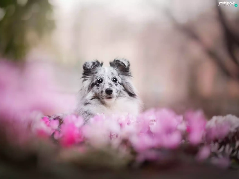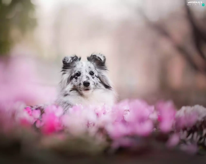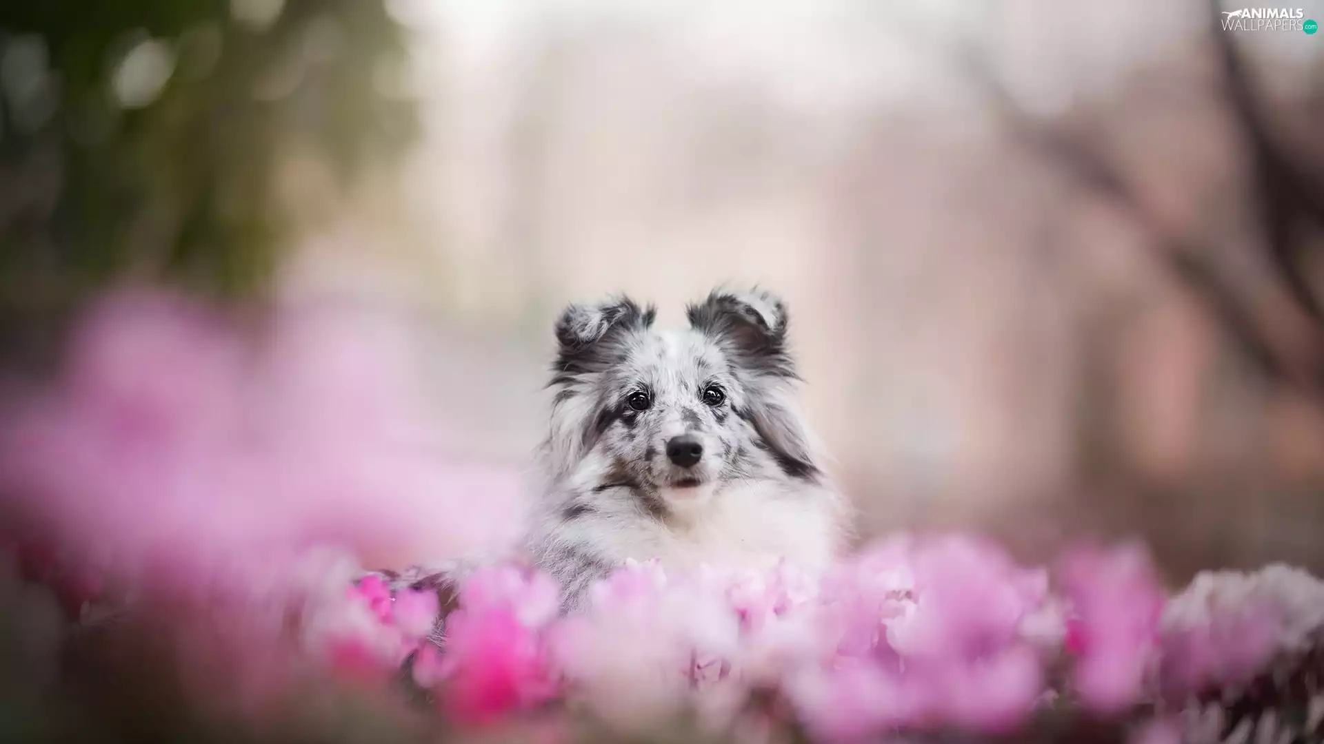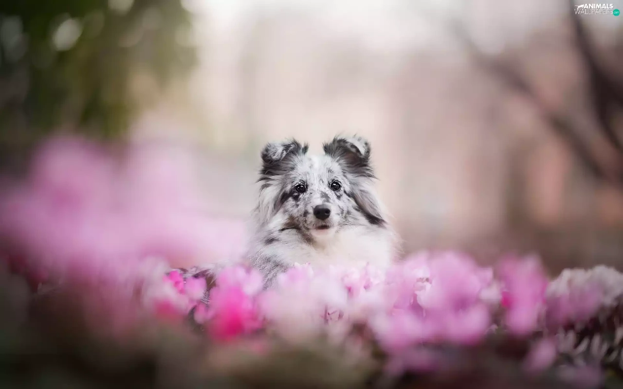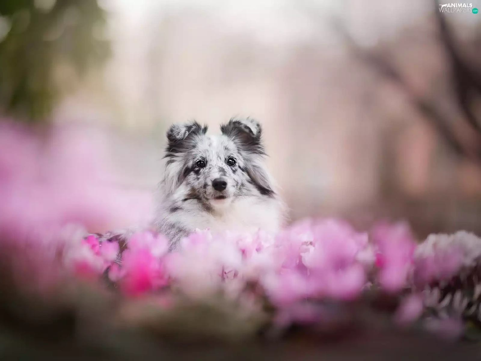 fuzzy, background, shetland Sheepdog, Flowers, dog