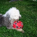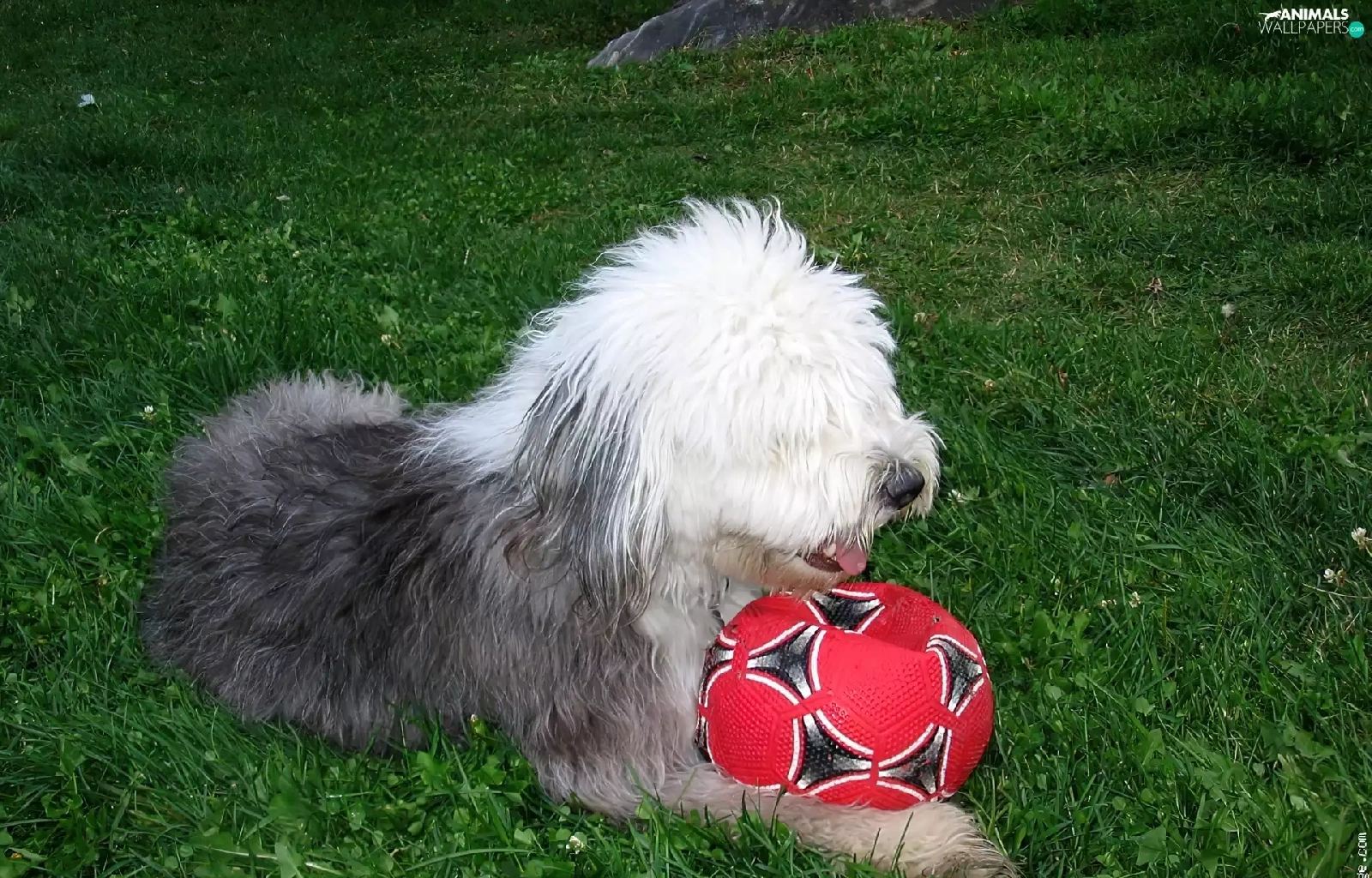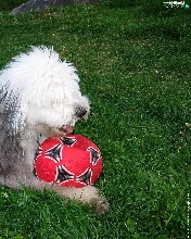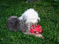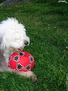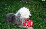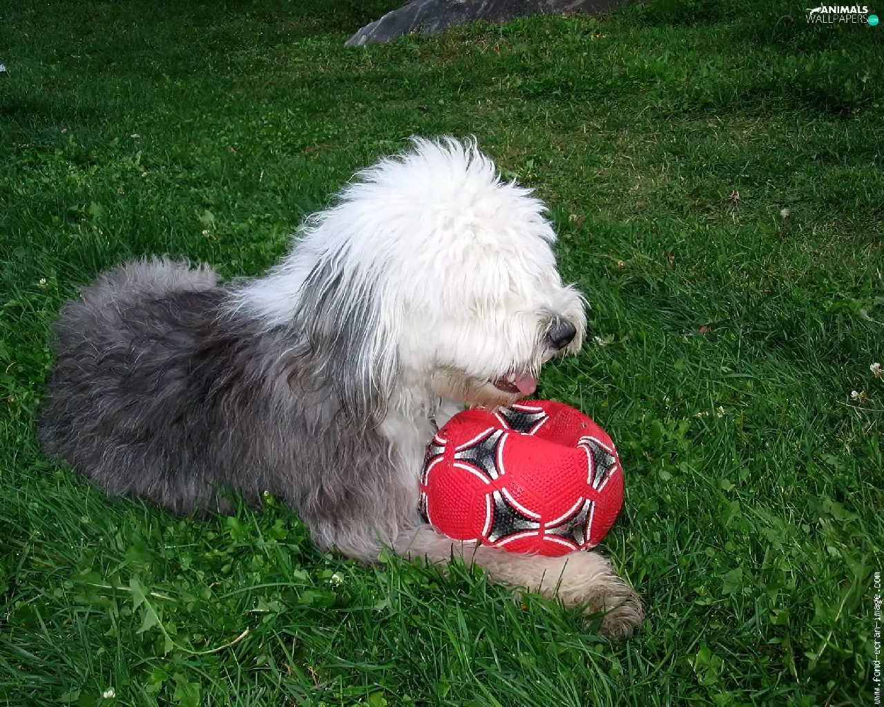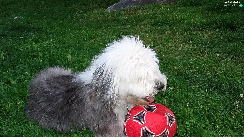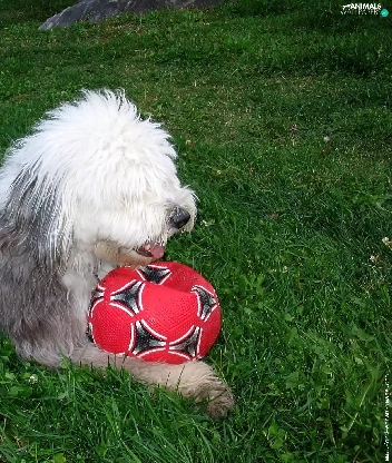 Ball, Old English Sheepdog, red hot