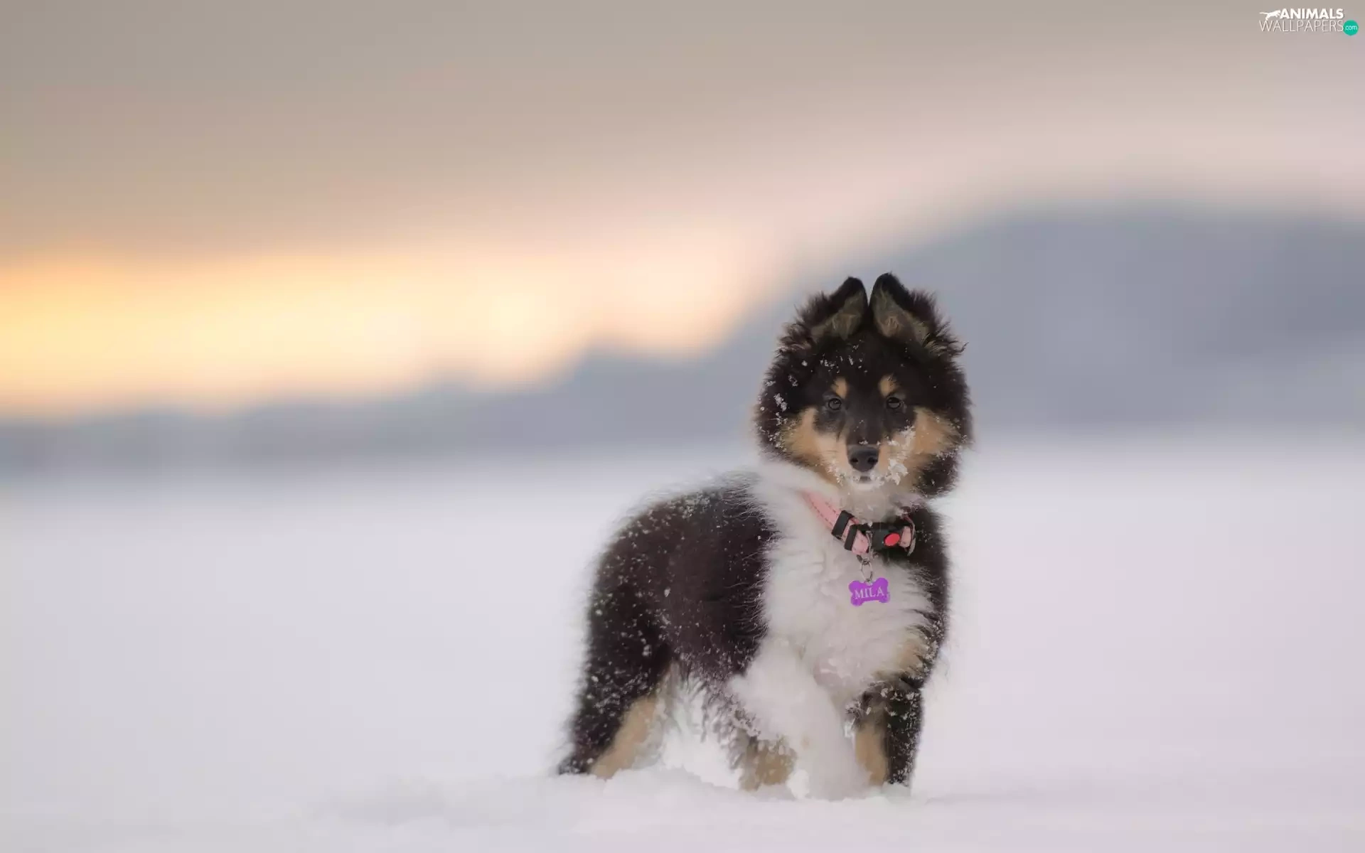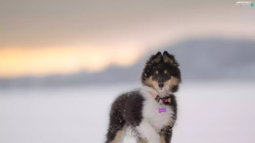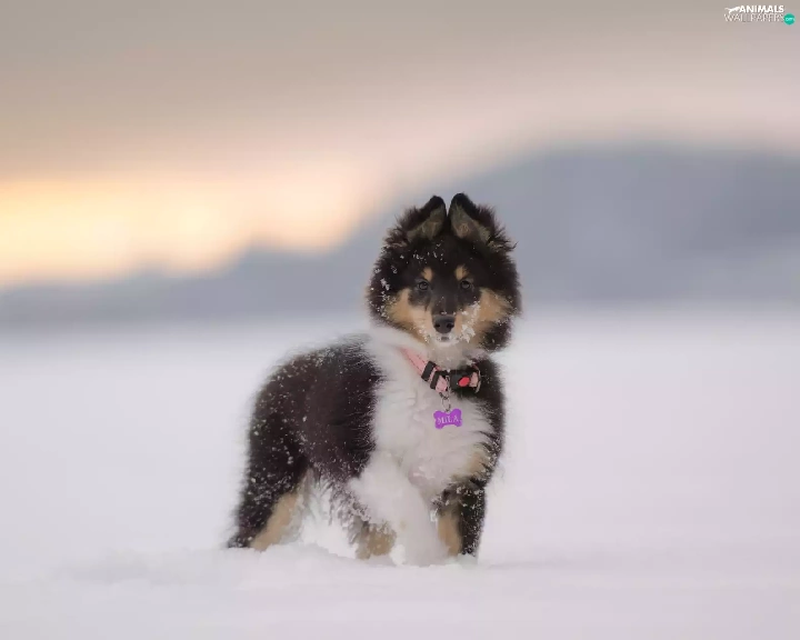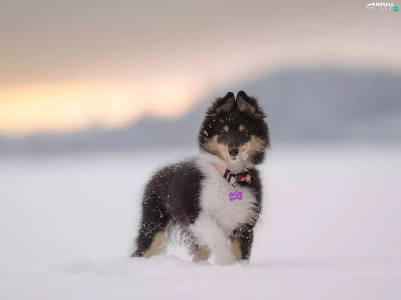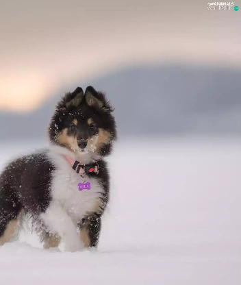 snow, Puppy, shetland Sheepdog
