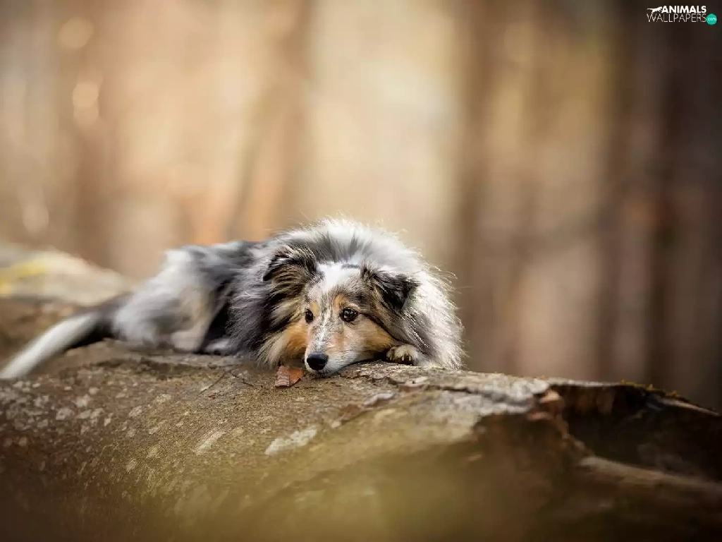 trees, dog, shetland Sheepdog