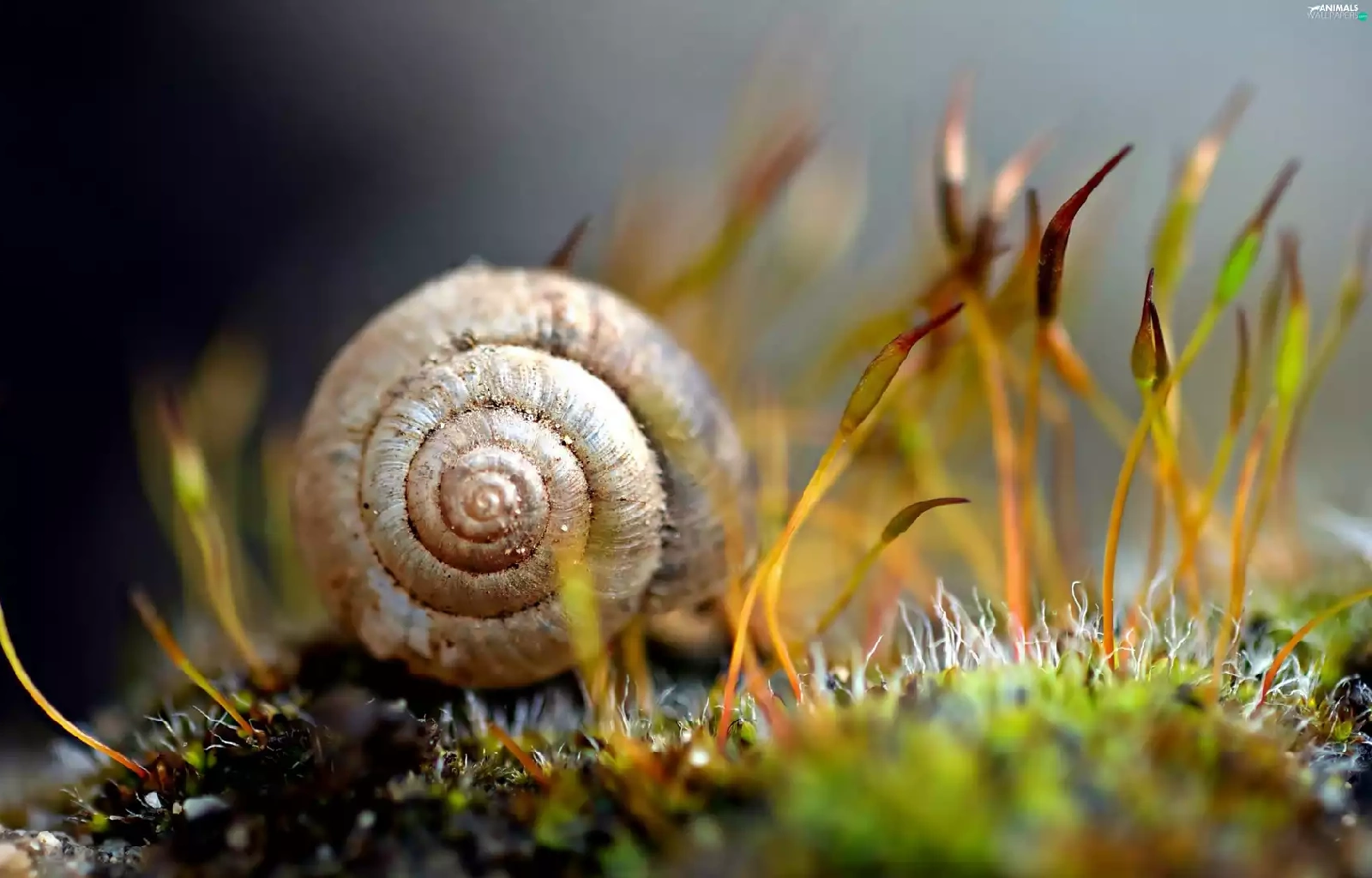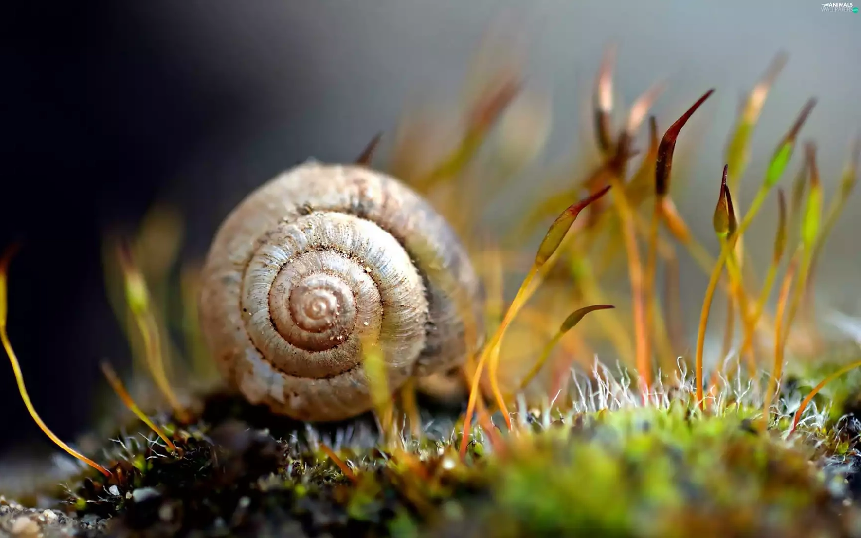 Moss, snail, blur, shell