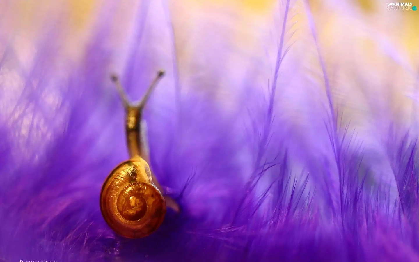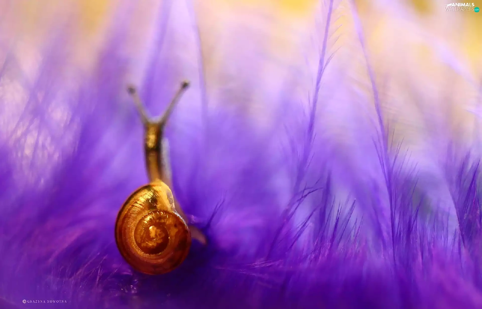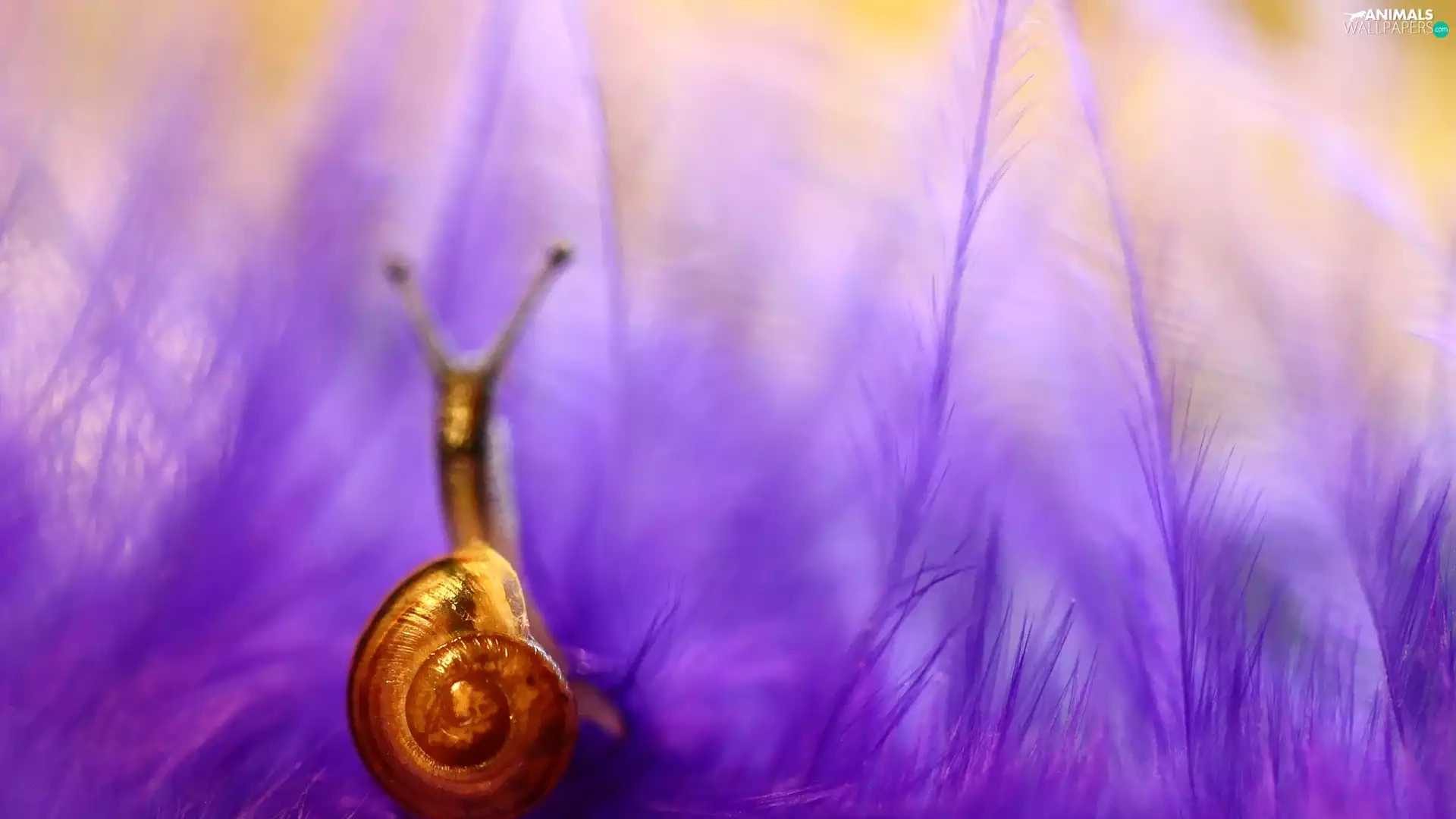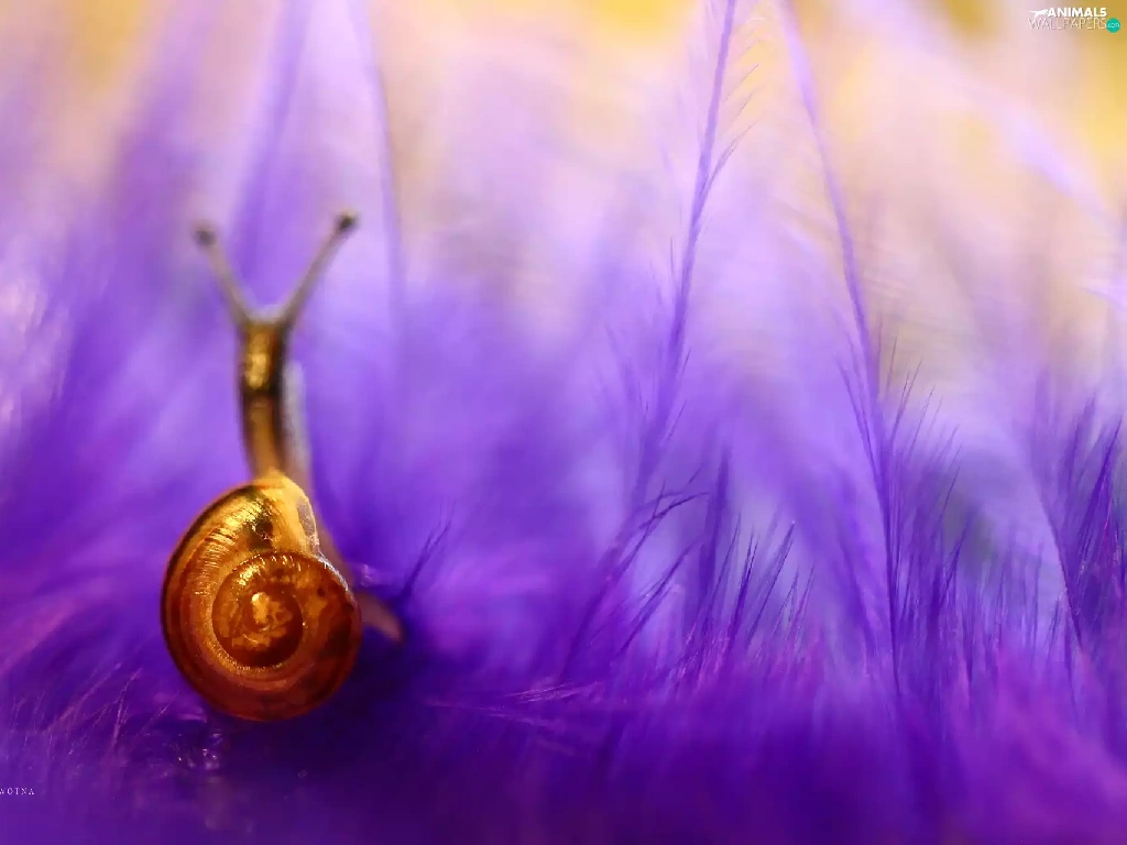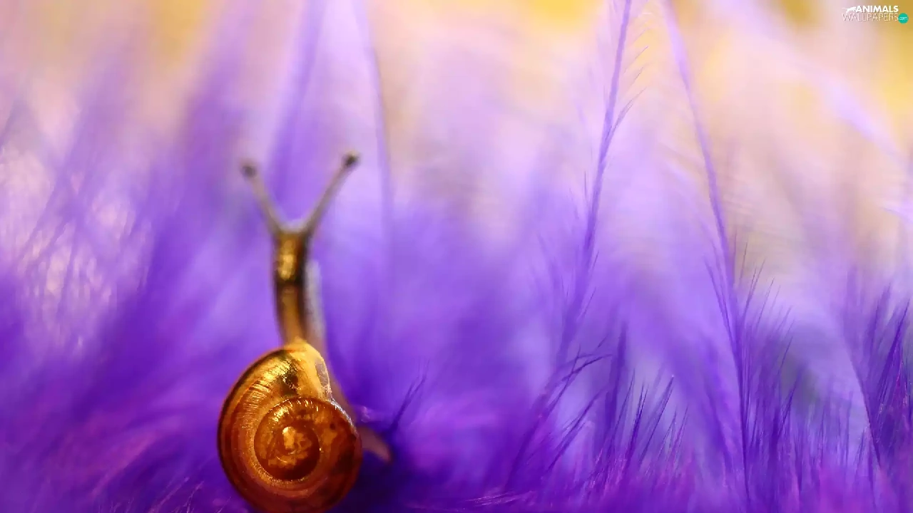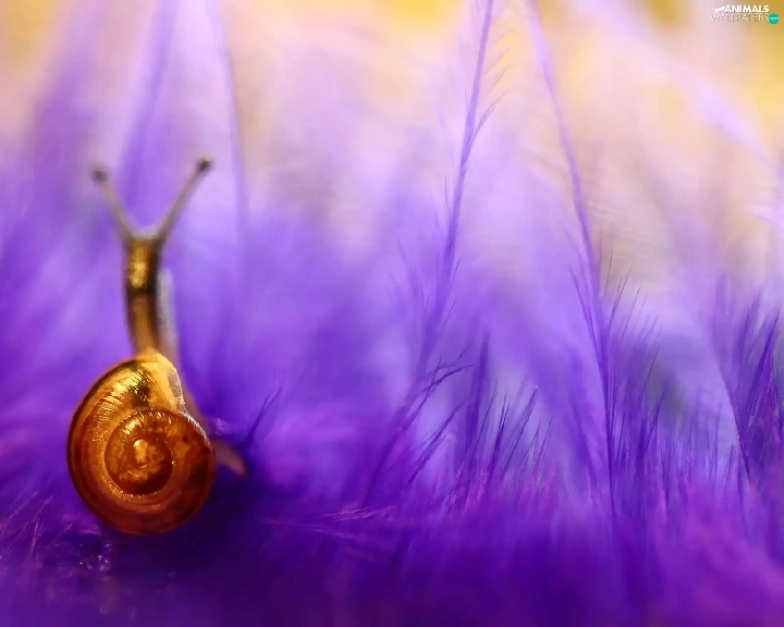 snail, purple, feather, shell