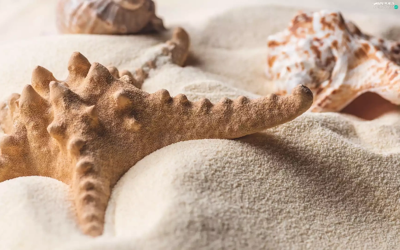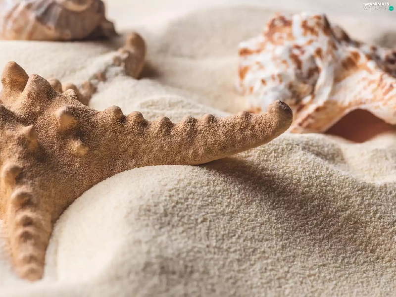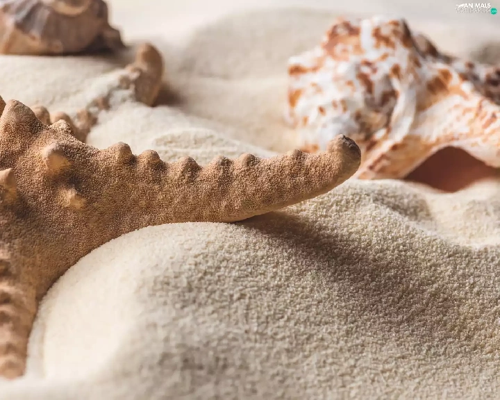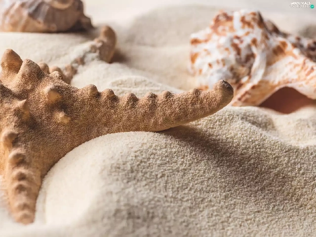 Shells, starfish, Sand