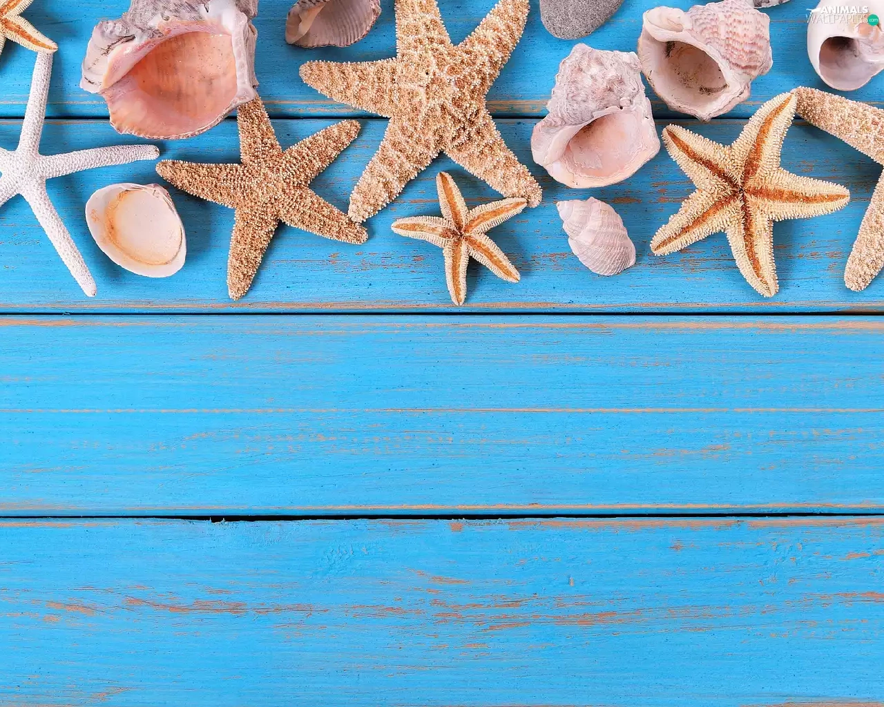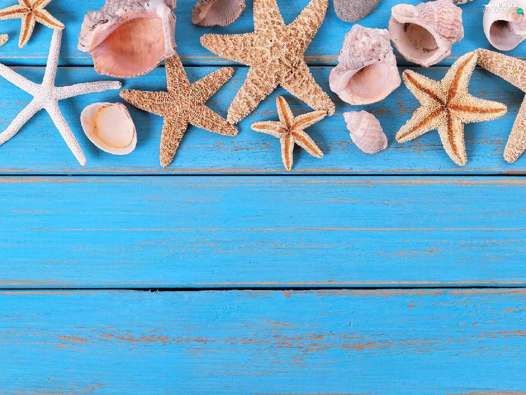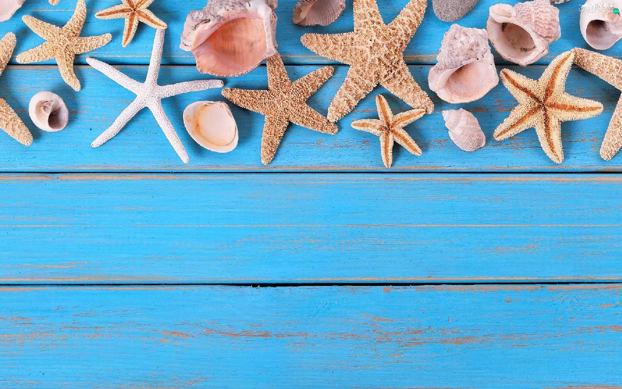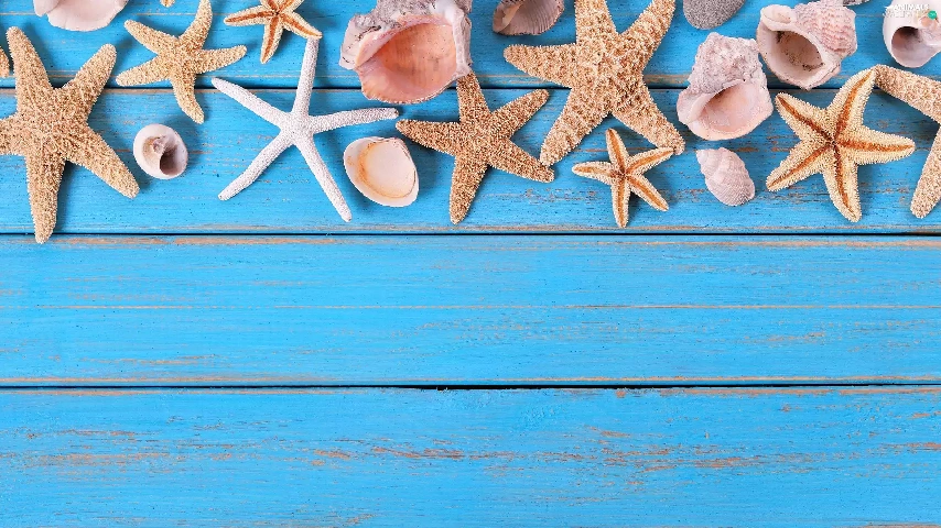 starfish, Blue, boarding, Shells