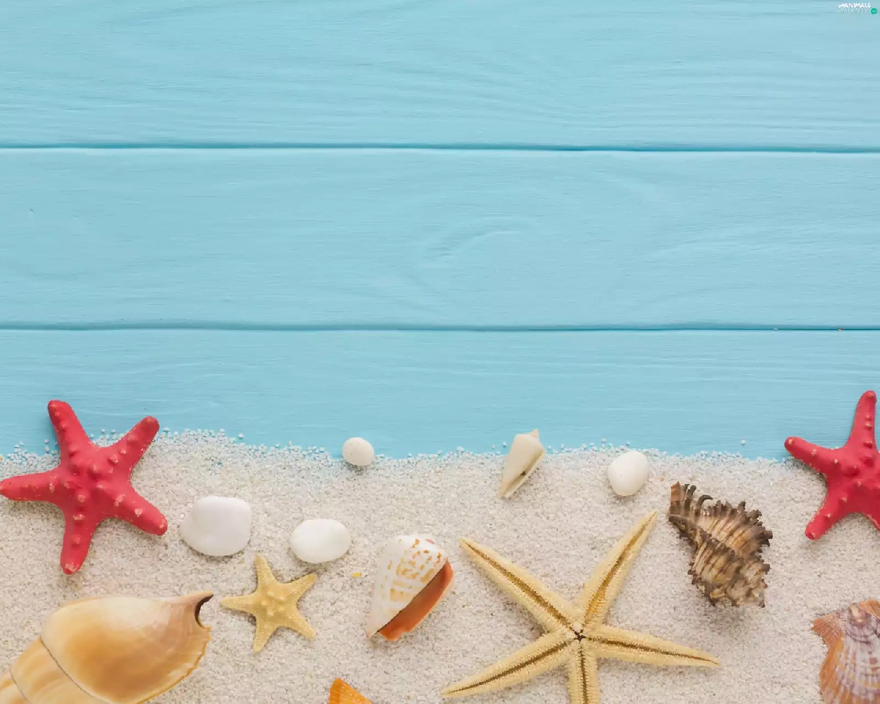 starfish, Sand, boarding, Shells