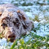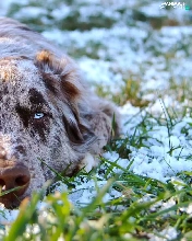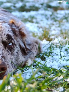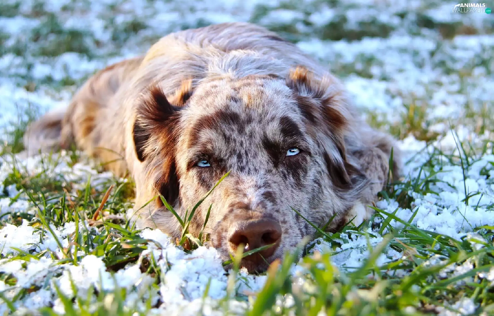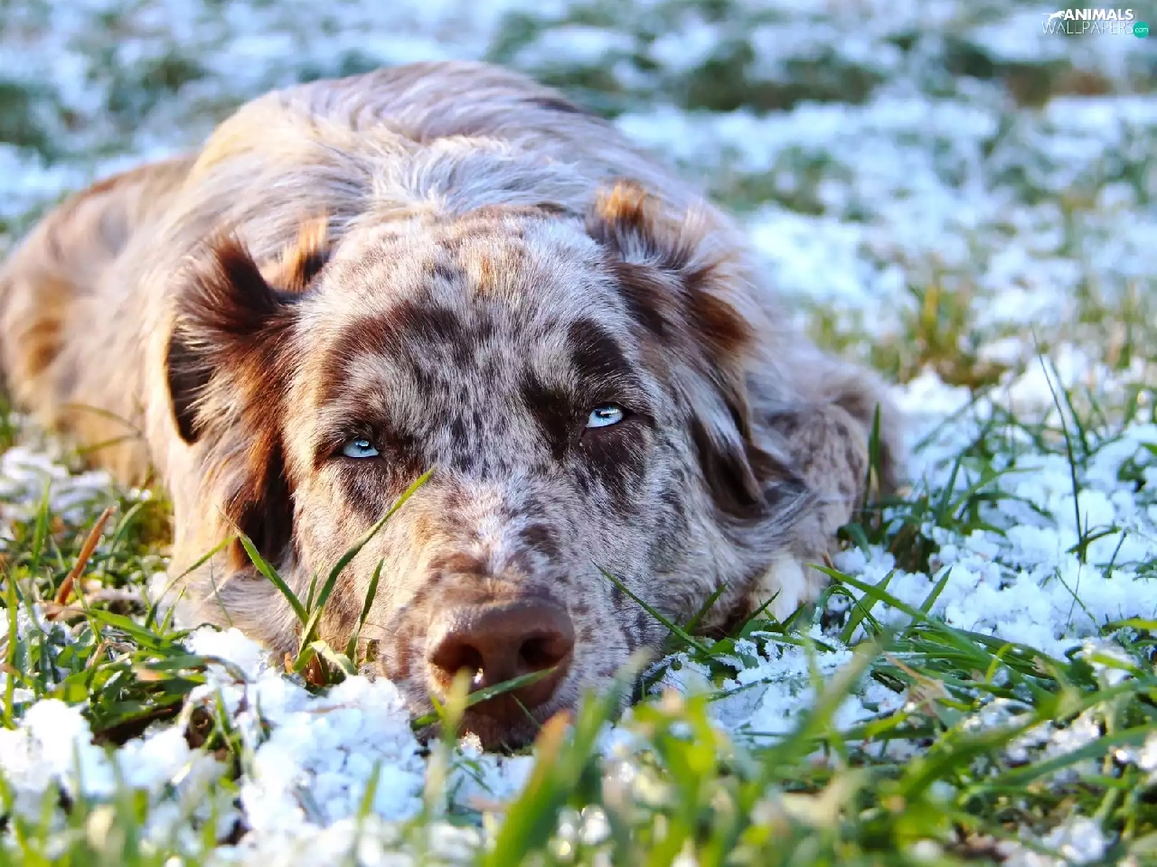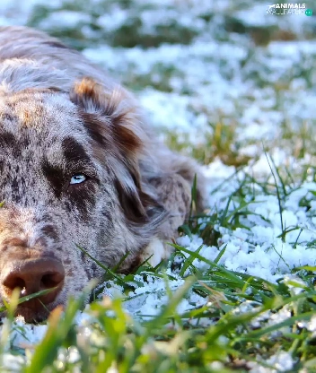 snow, grass, Australian Shepherd, Australian Shepherd, lying