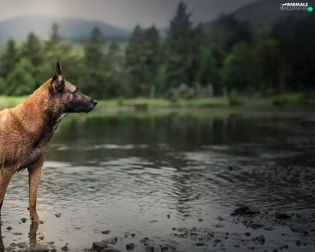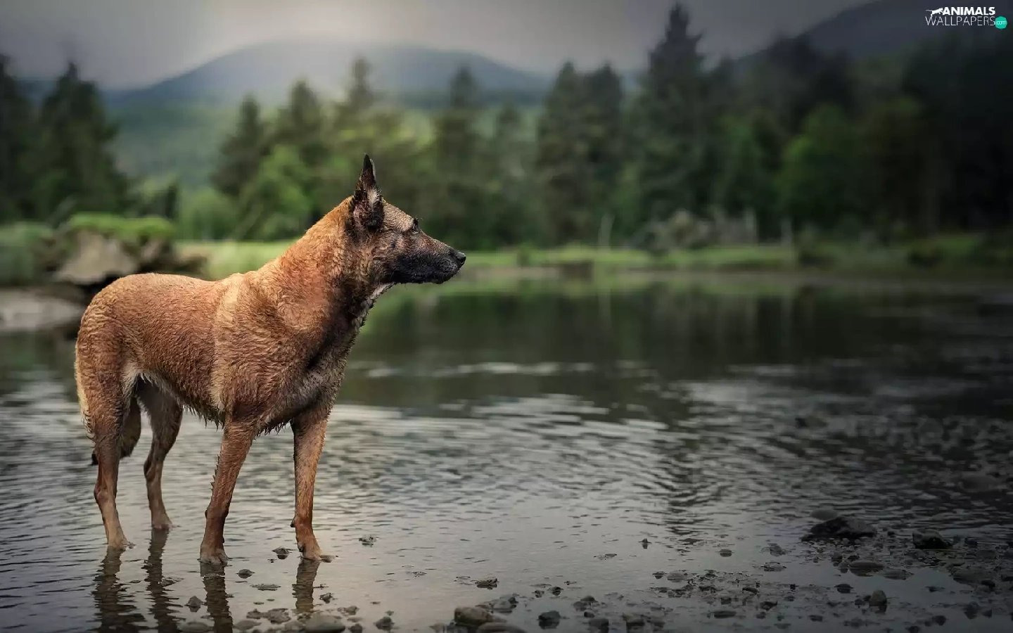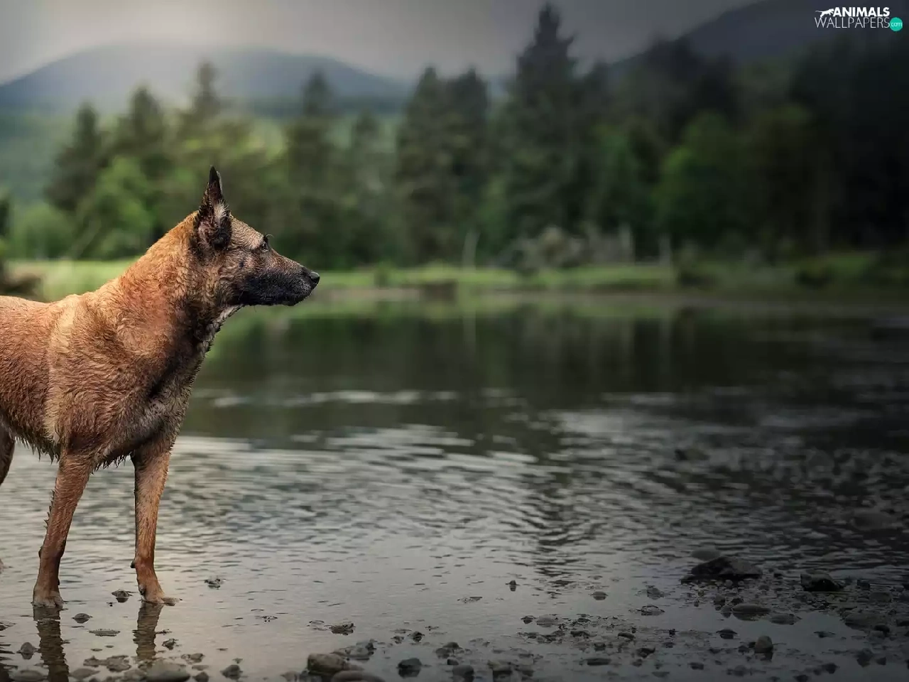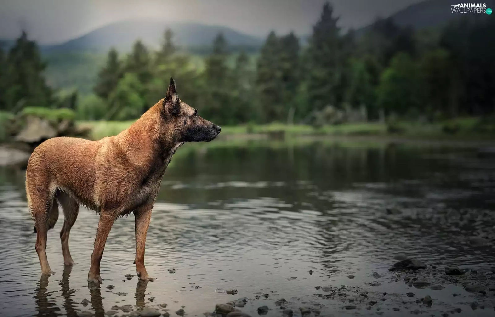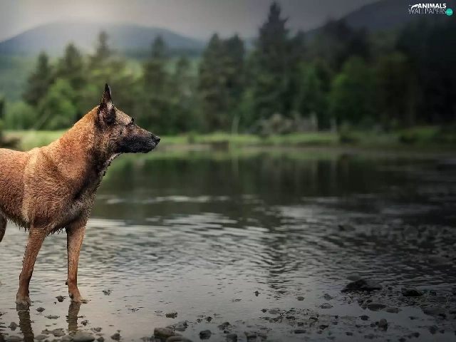 fuzzy, forest, Belgian Shepherd Malinois, River, dog
