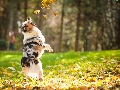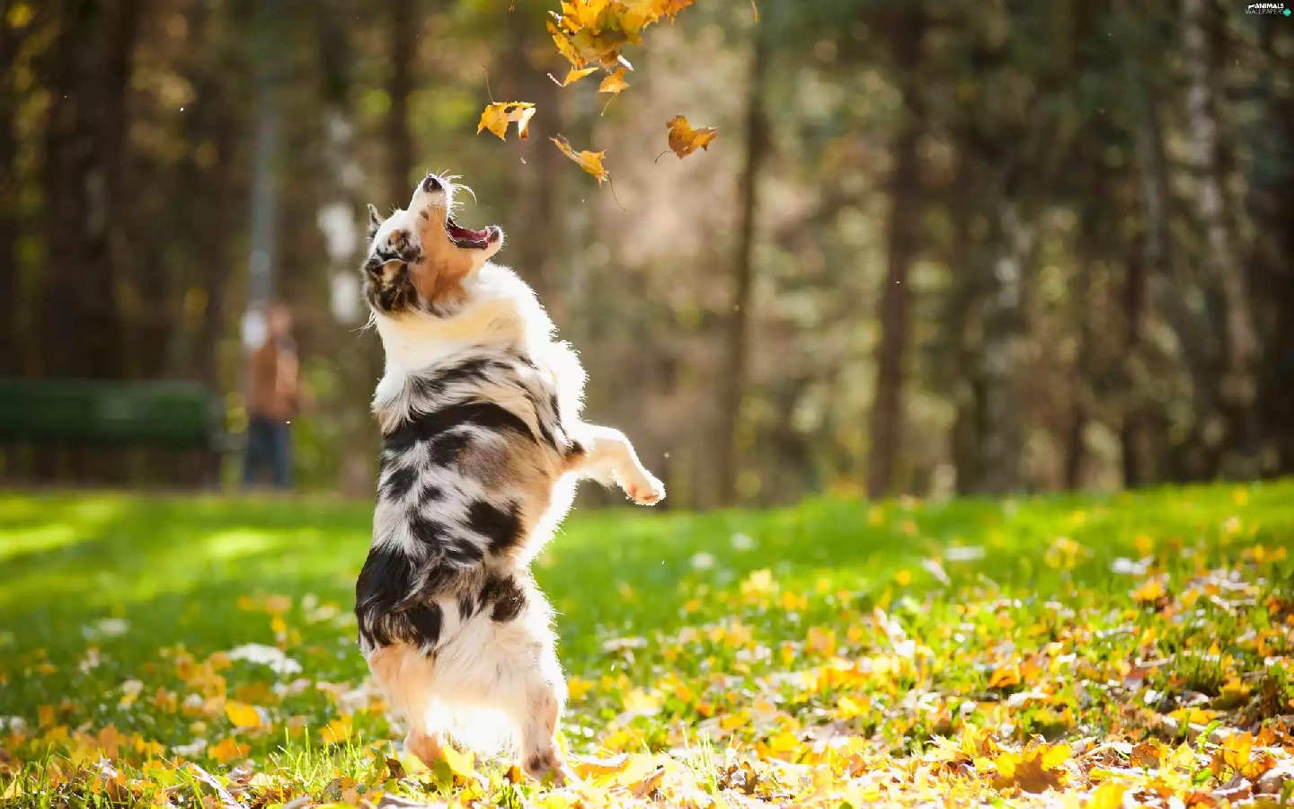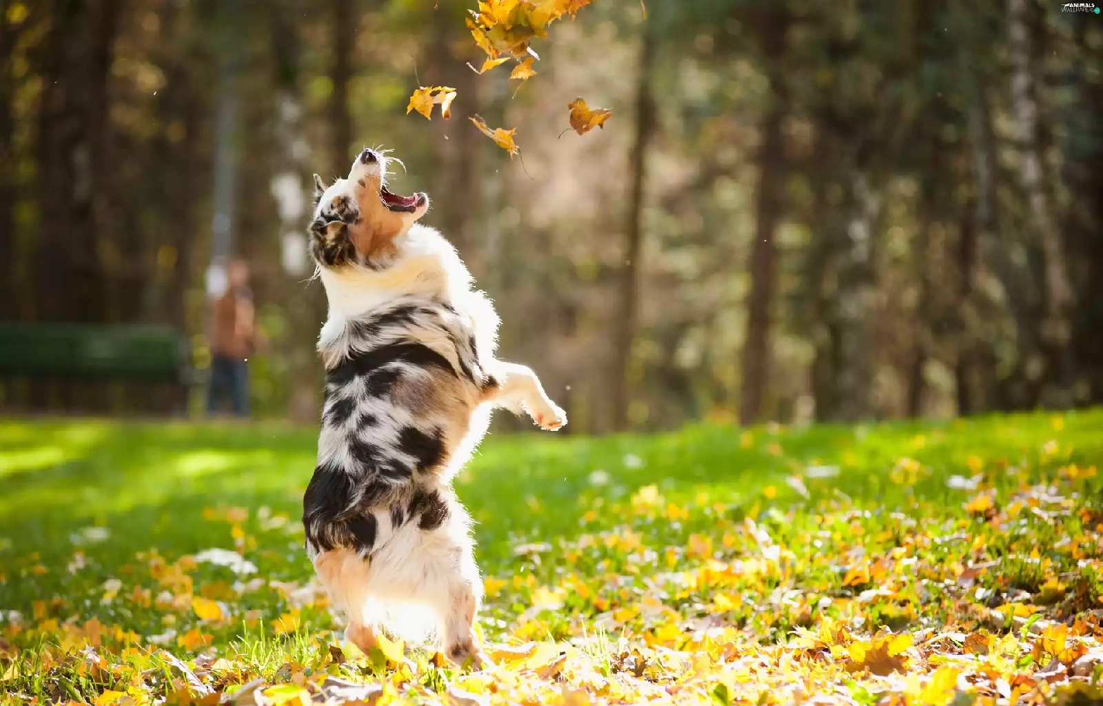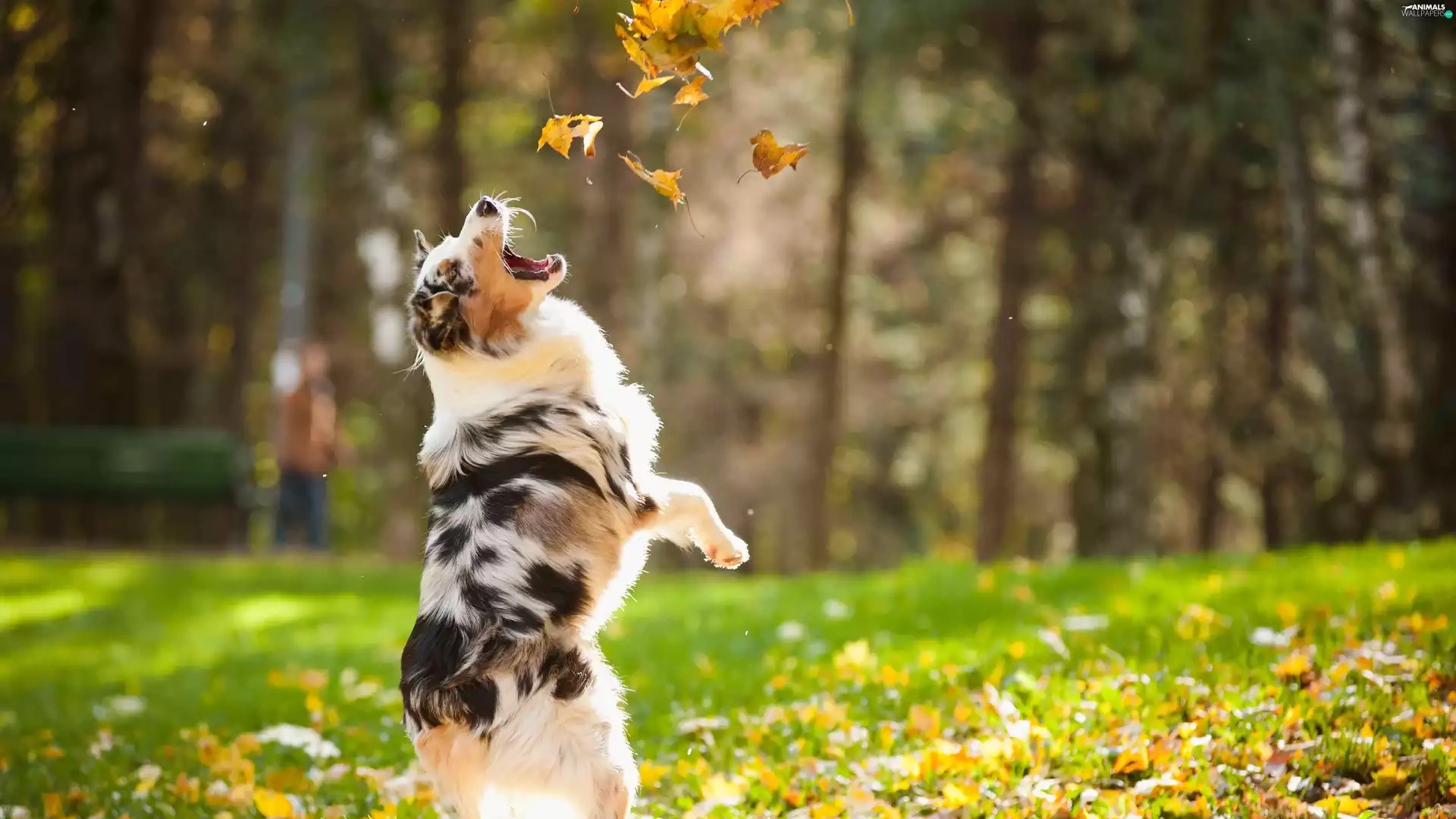 Catching, Leaves, Australian Shepherd, autumn, dog