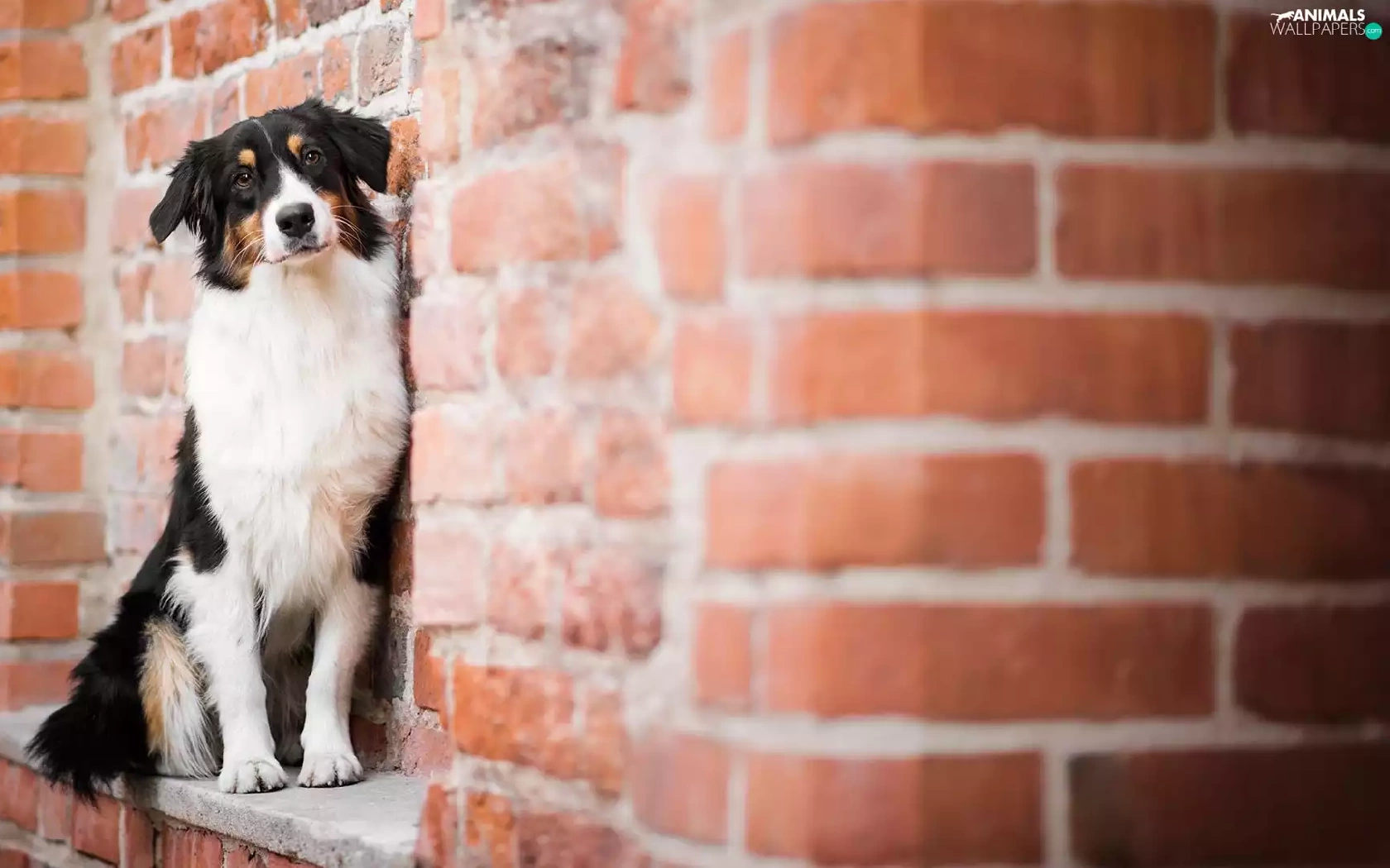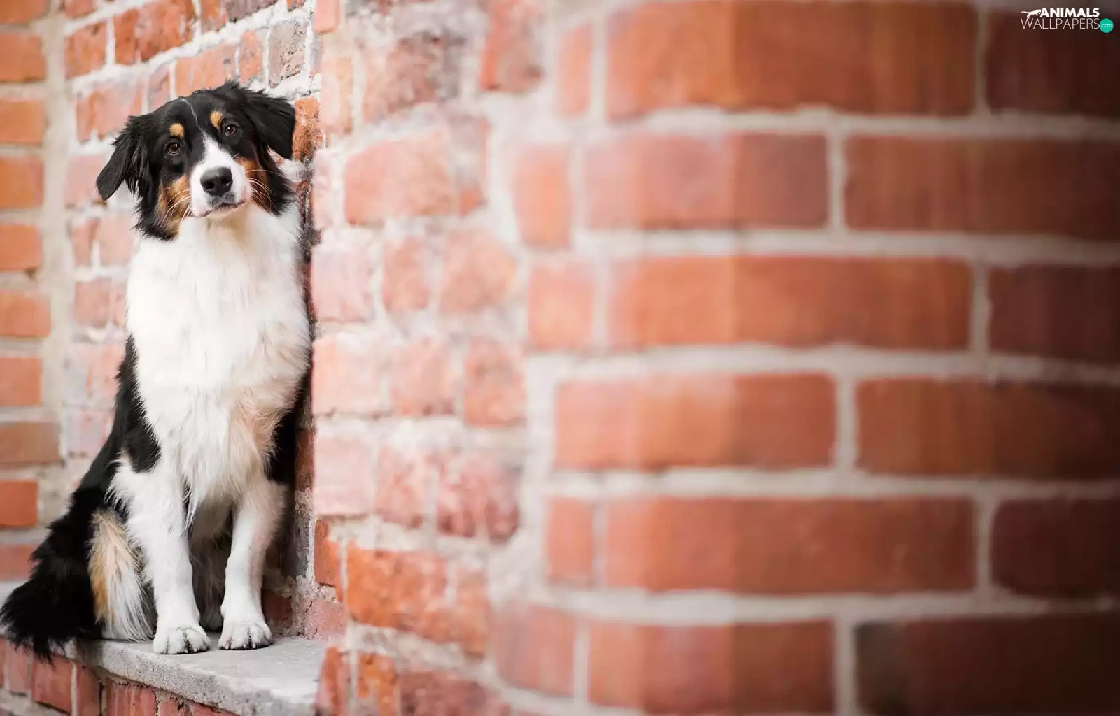 ledge, brick, Australian Shepherd, wall, dog