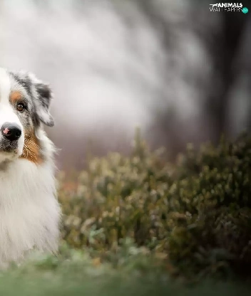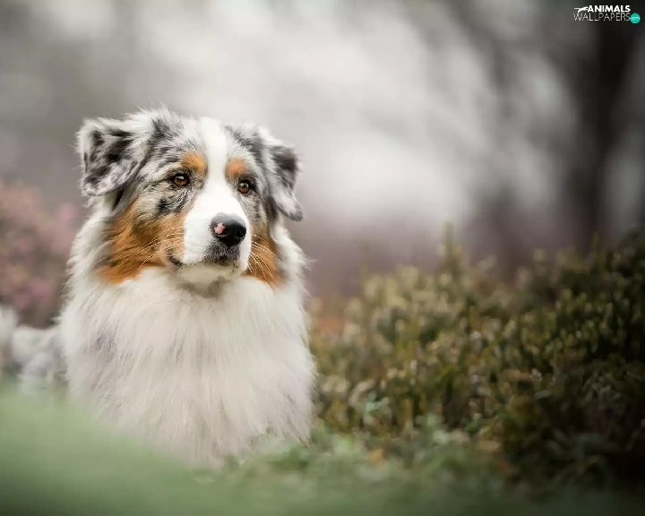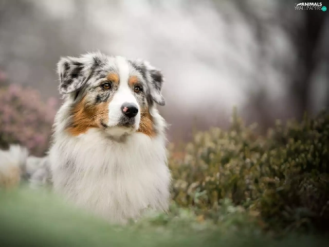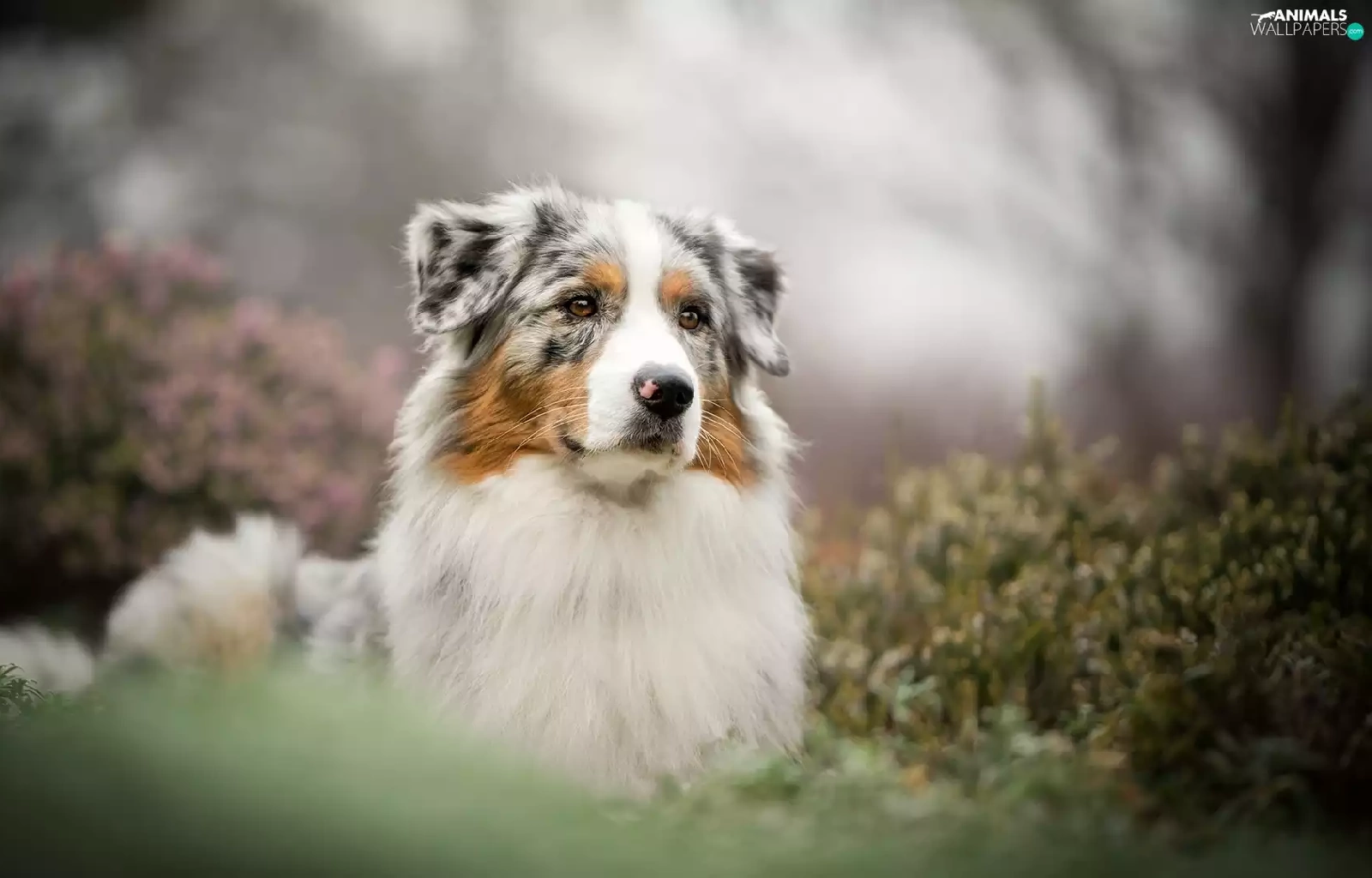 Plants, Bokeh, Australian Shepherd, muzzle, dog