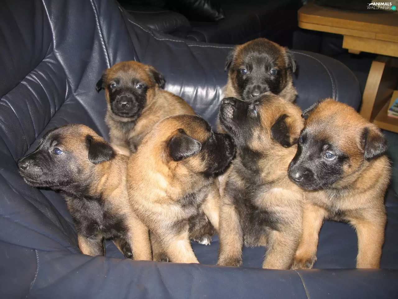 Belgian Shepherd Malinois, six, puppies