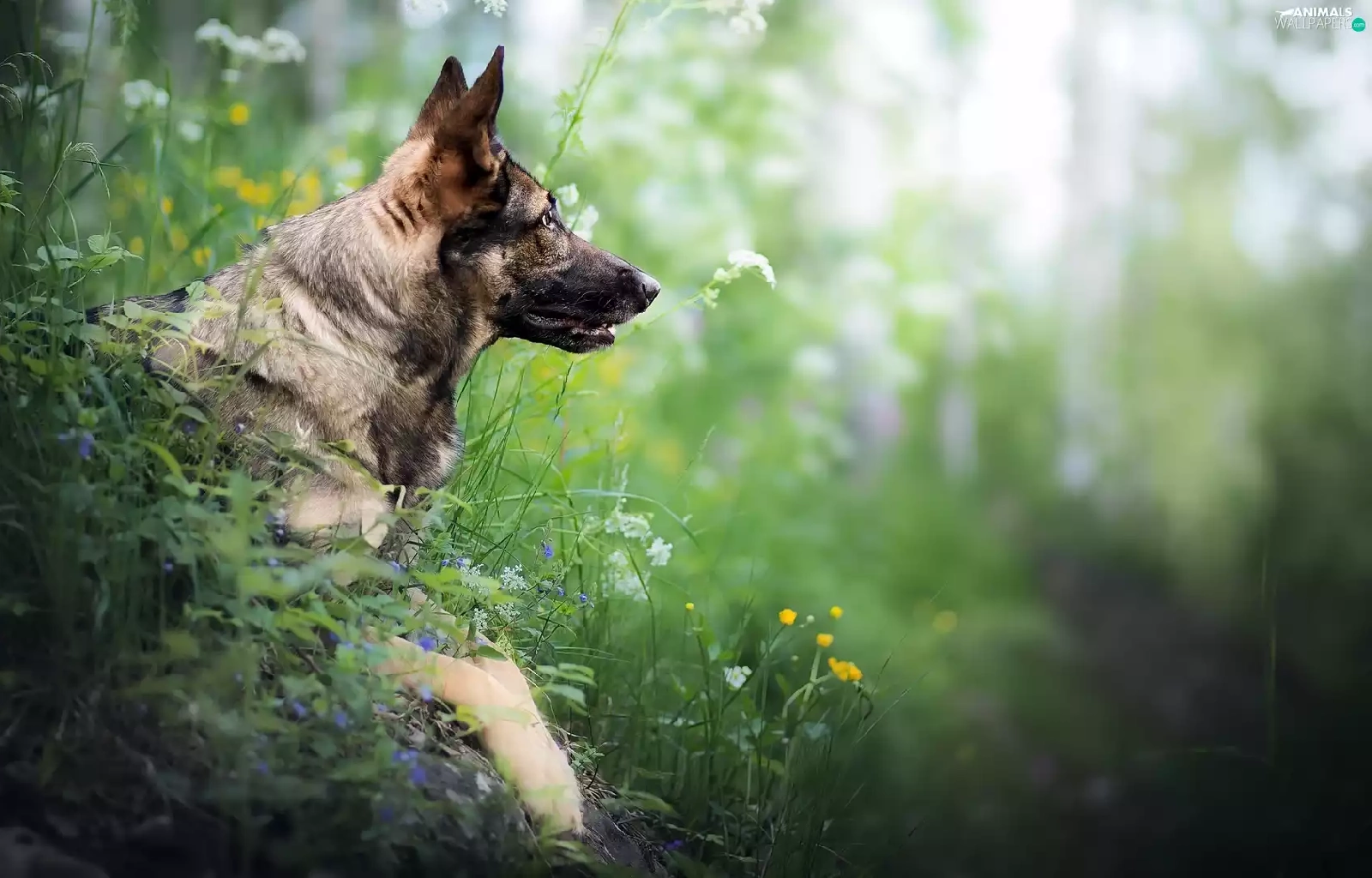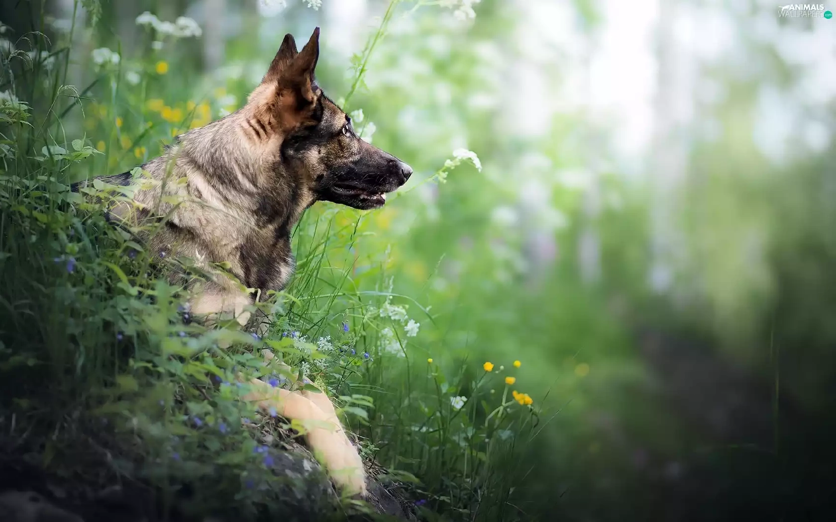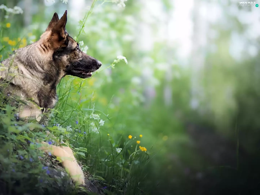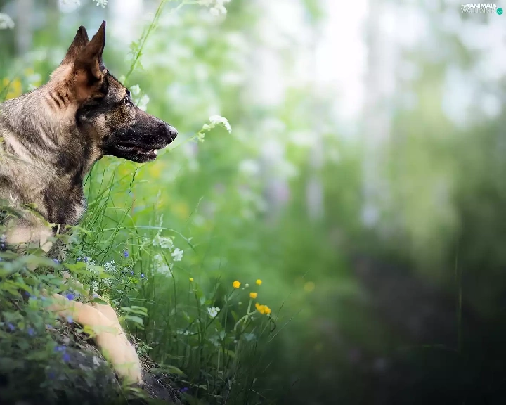 Plants, dog, German Shepherd