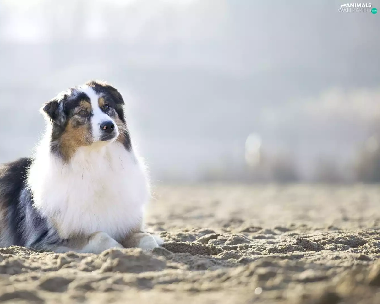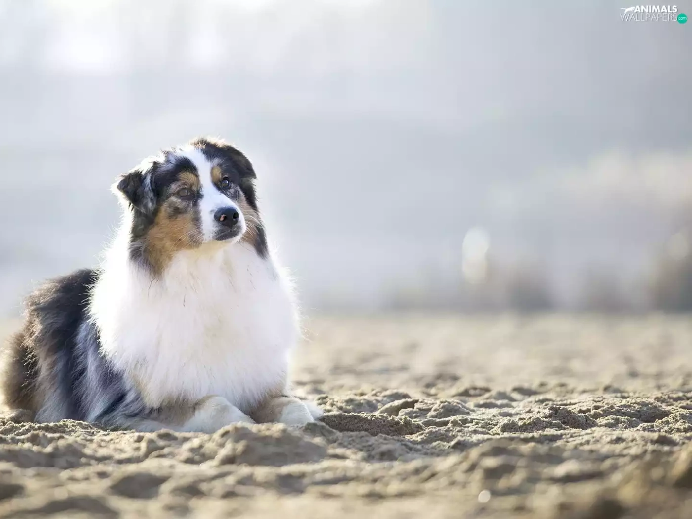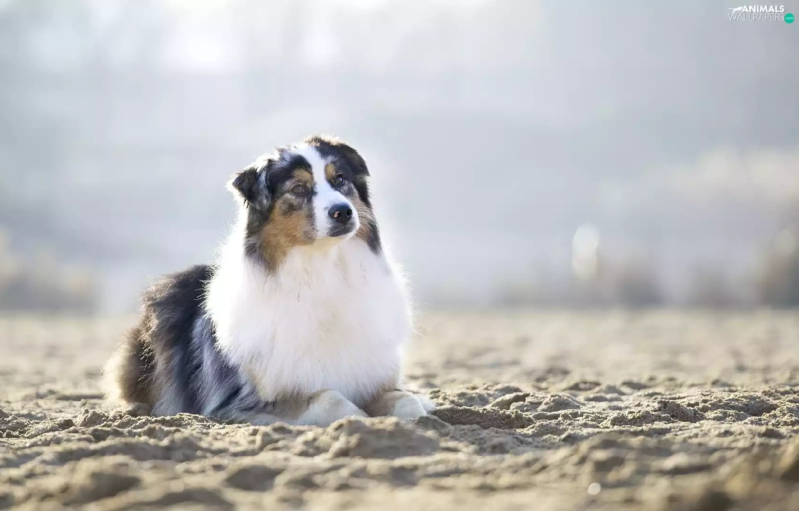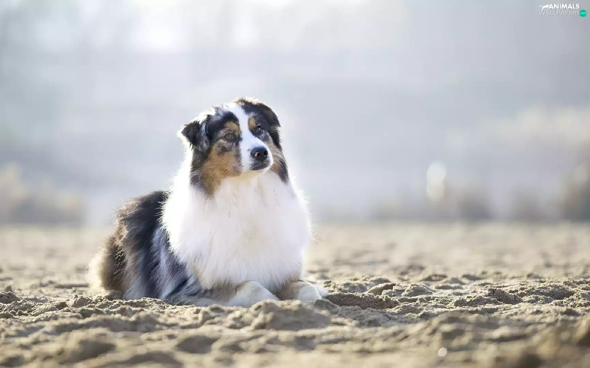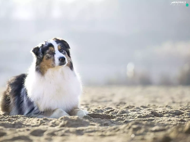 Sand, dog, Australian Shepherd