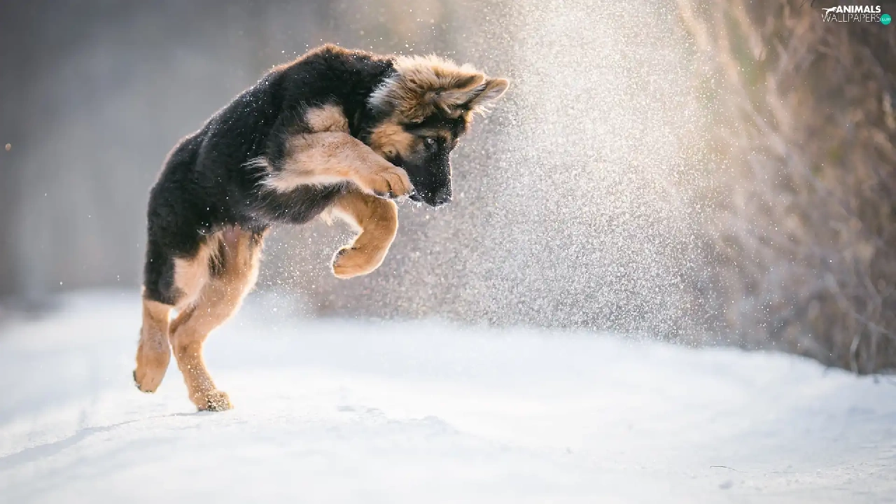 snow, Puppy, German Shepherd