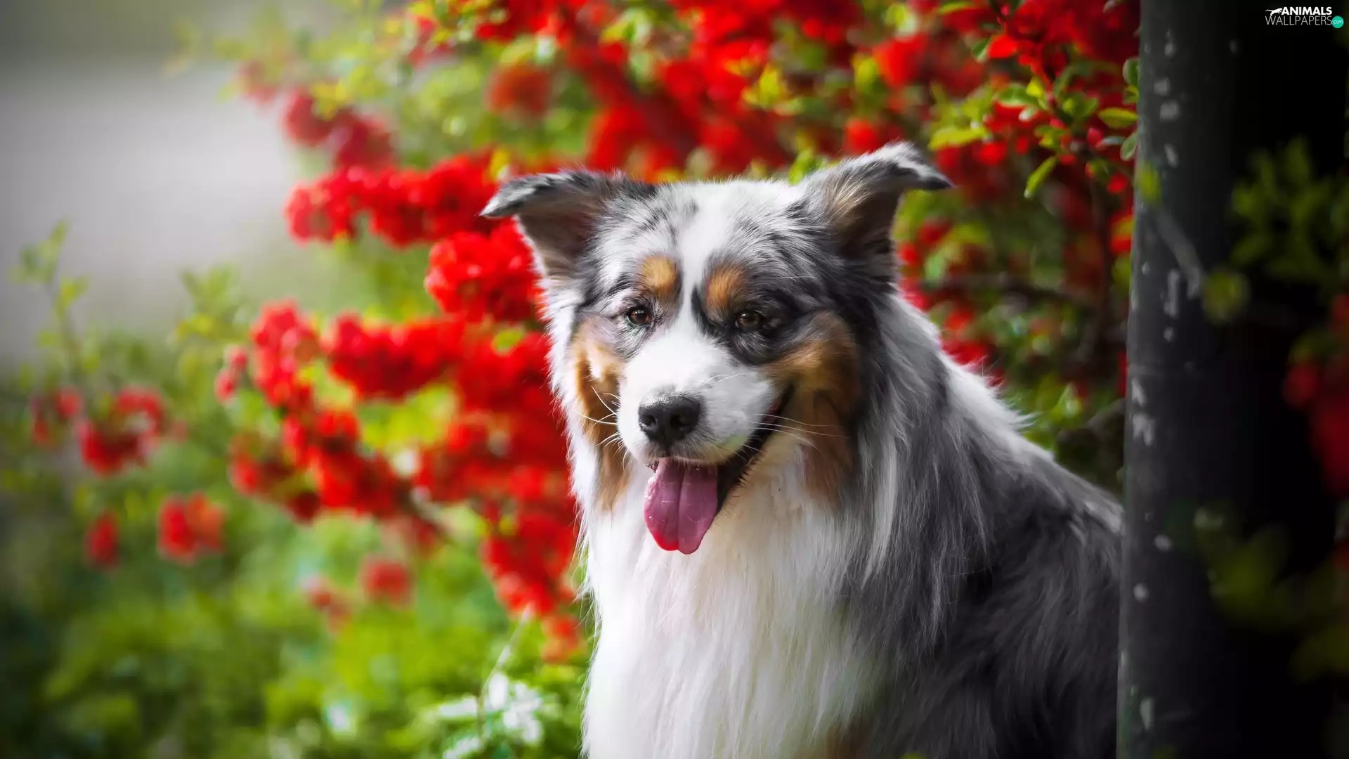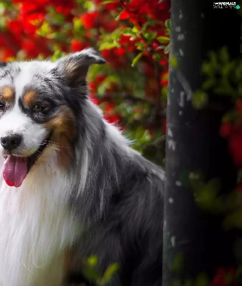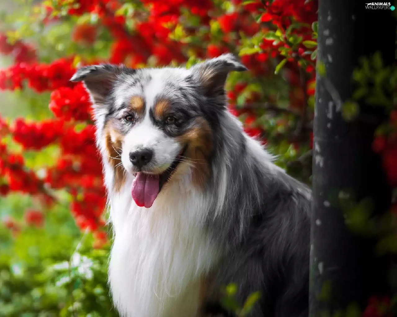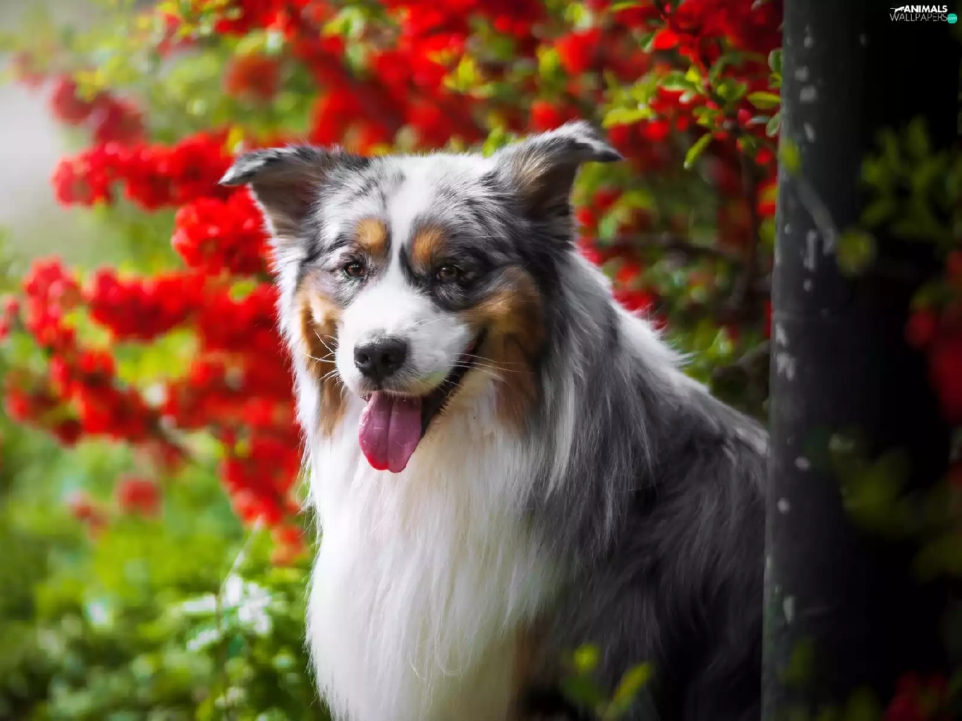 Australian Shepherd, Tounge, Flowers, muzzle