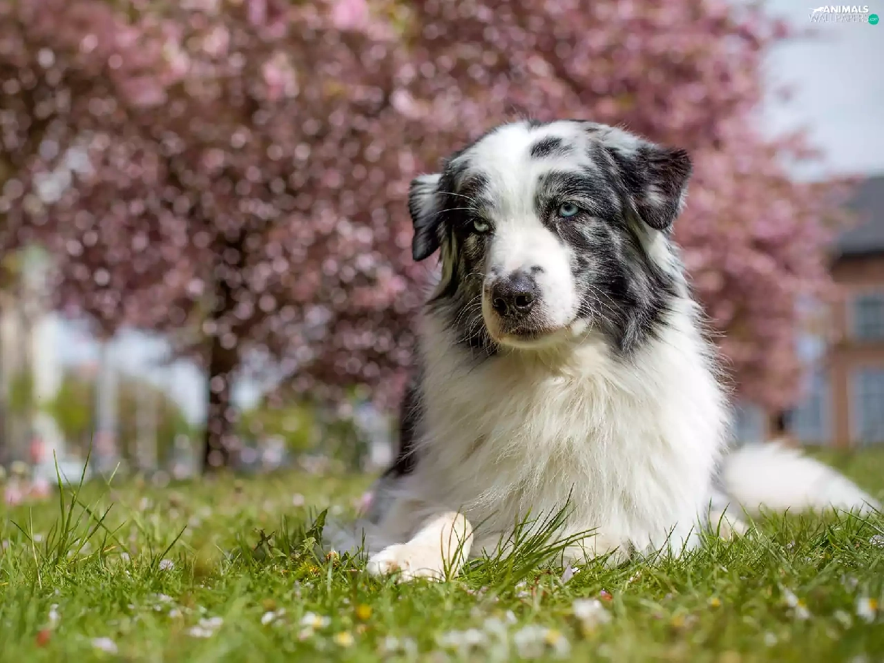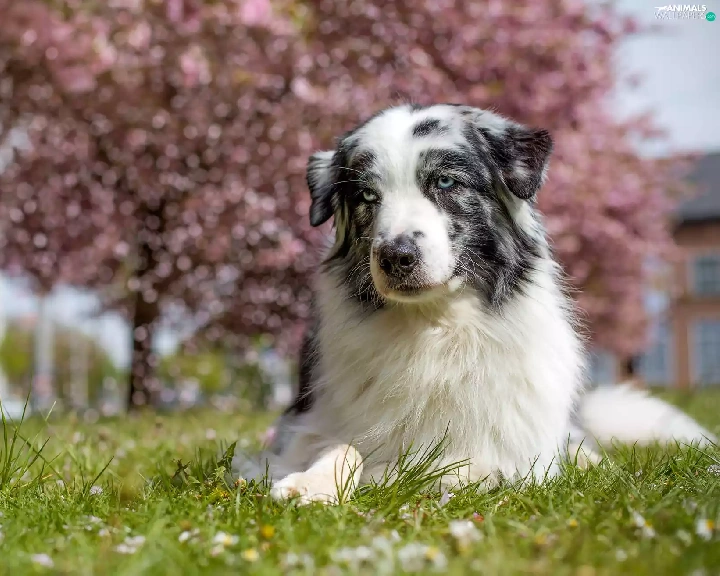 Australian Shepherd, trees, viewes, grass