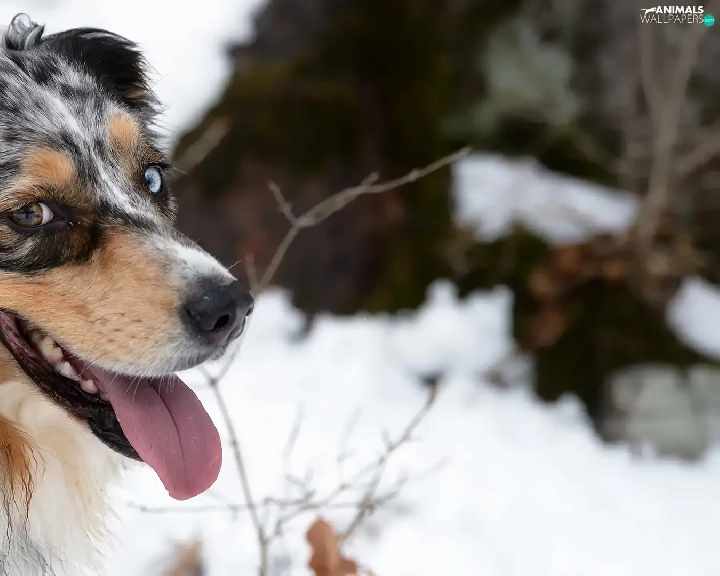 winter, dog, Australian Shepherd