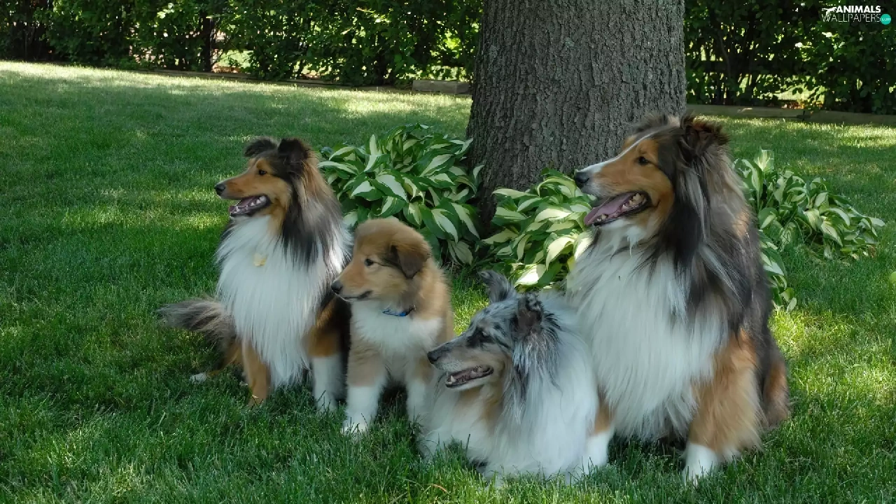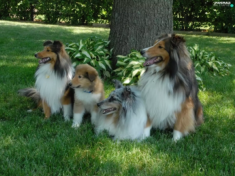 four, Scottish, grass, Shepherds