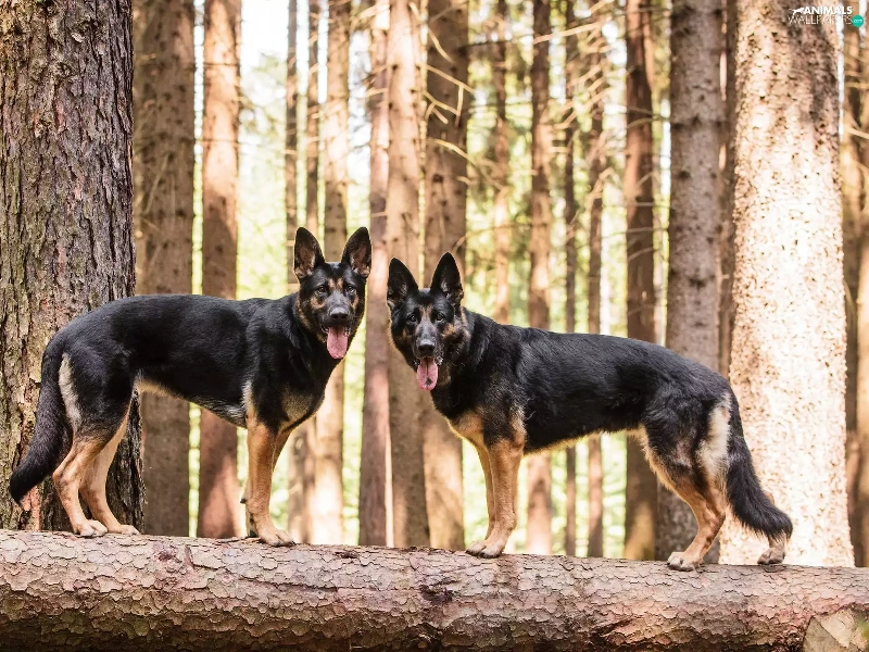 trees, viewes, German Shepherds, forest, Two cars
