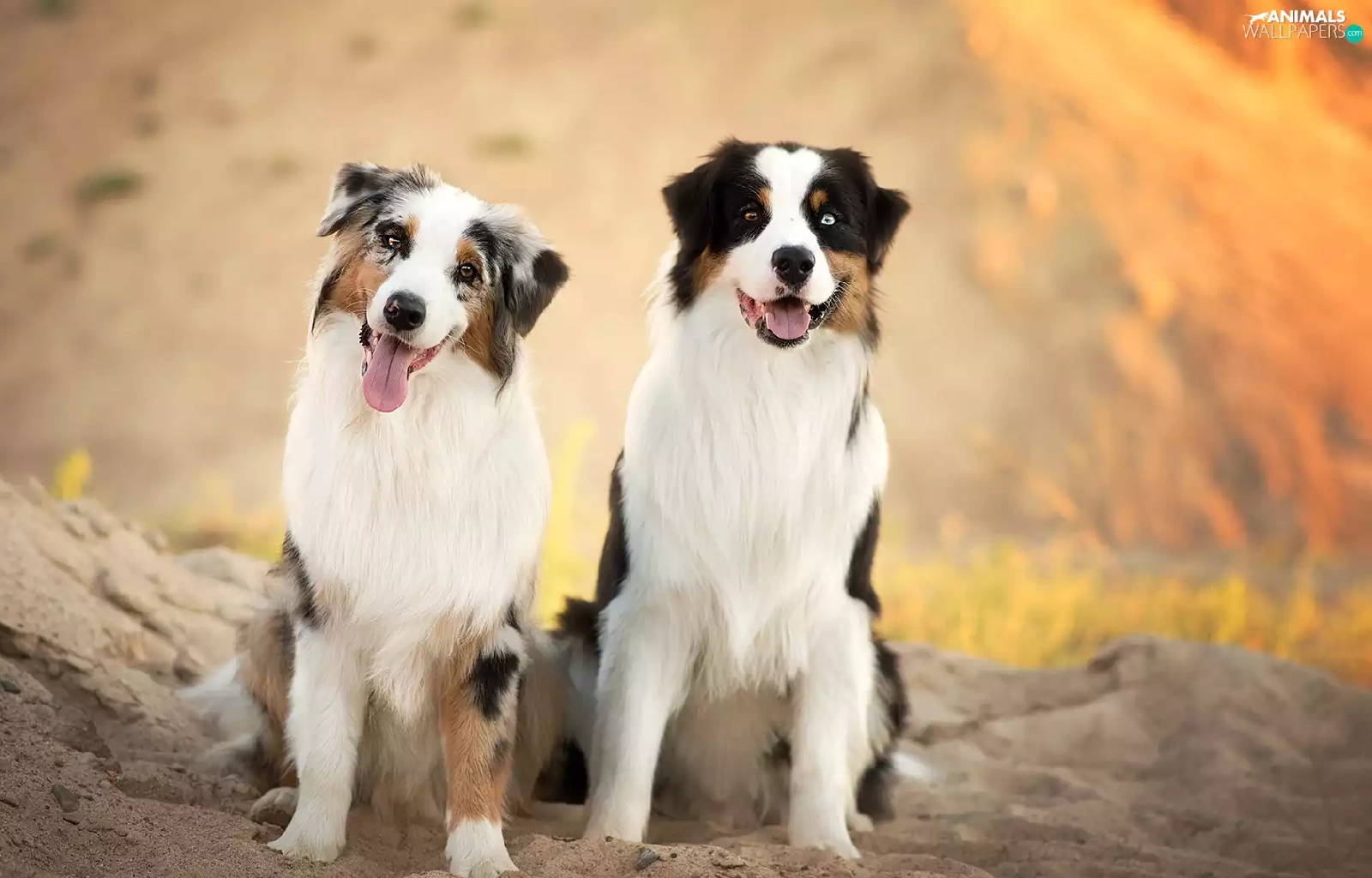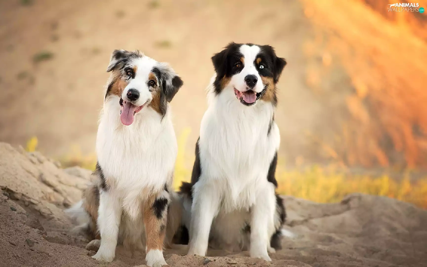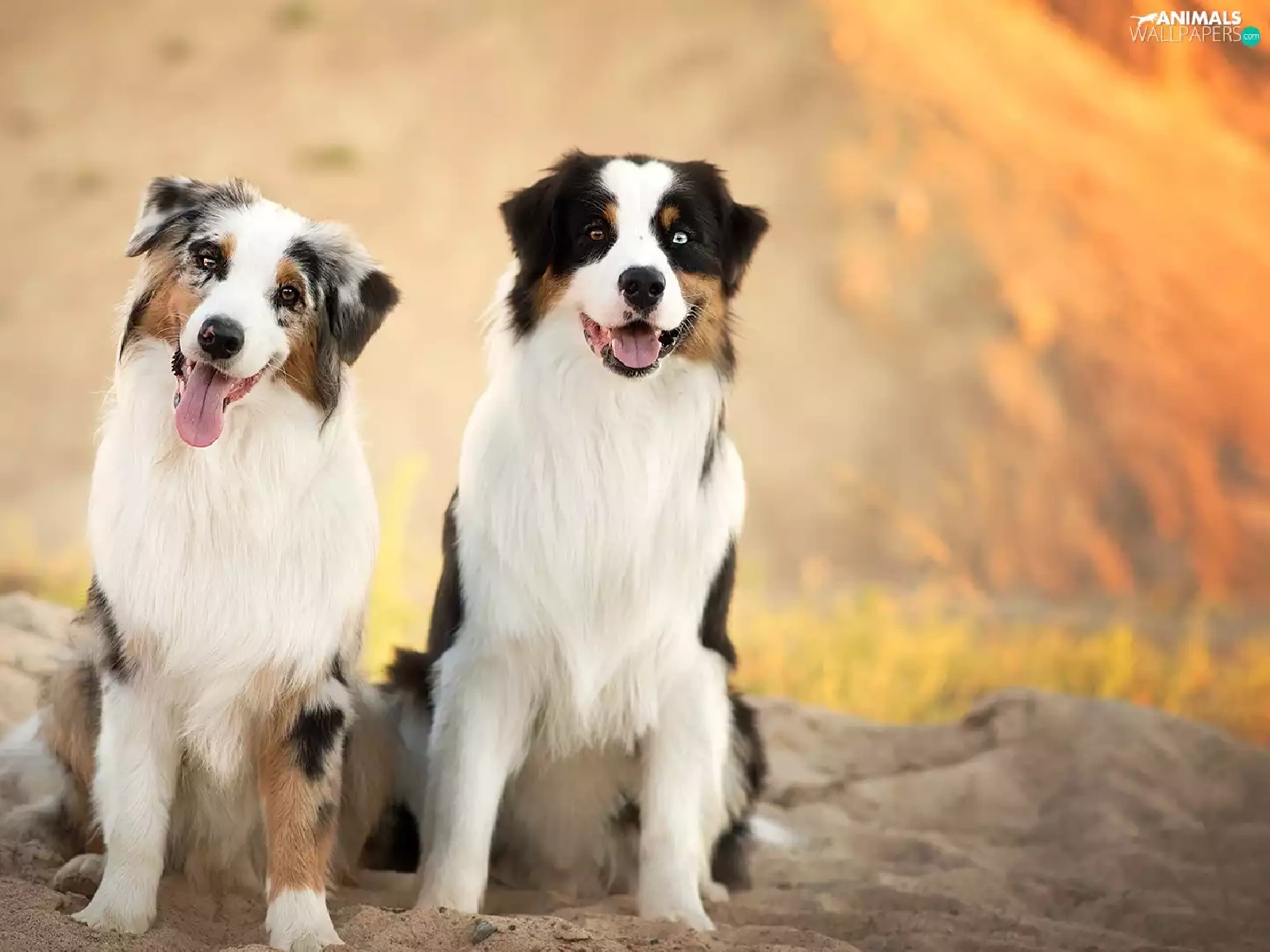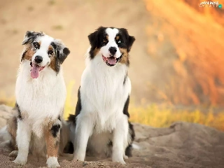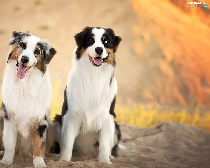 Sand, Dogs, Australian Shepherds