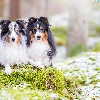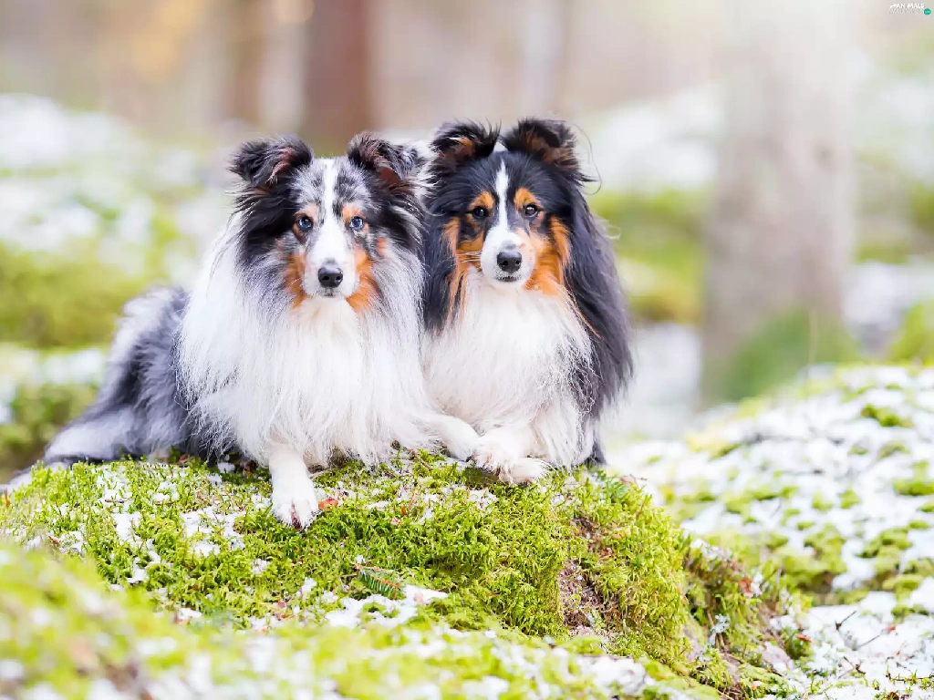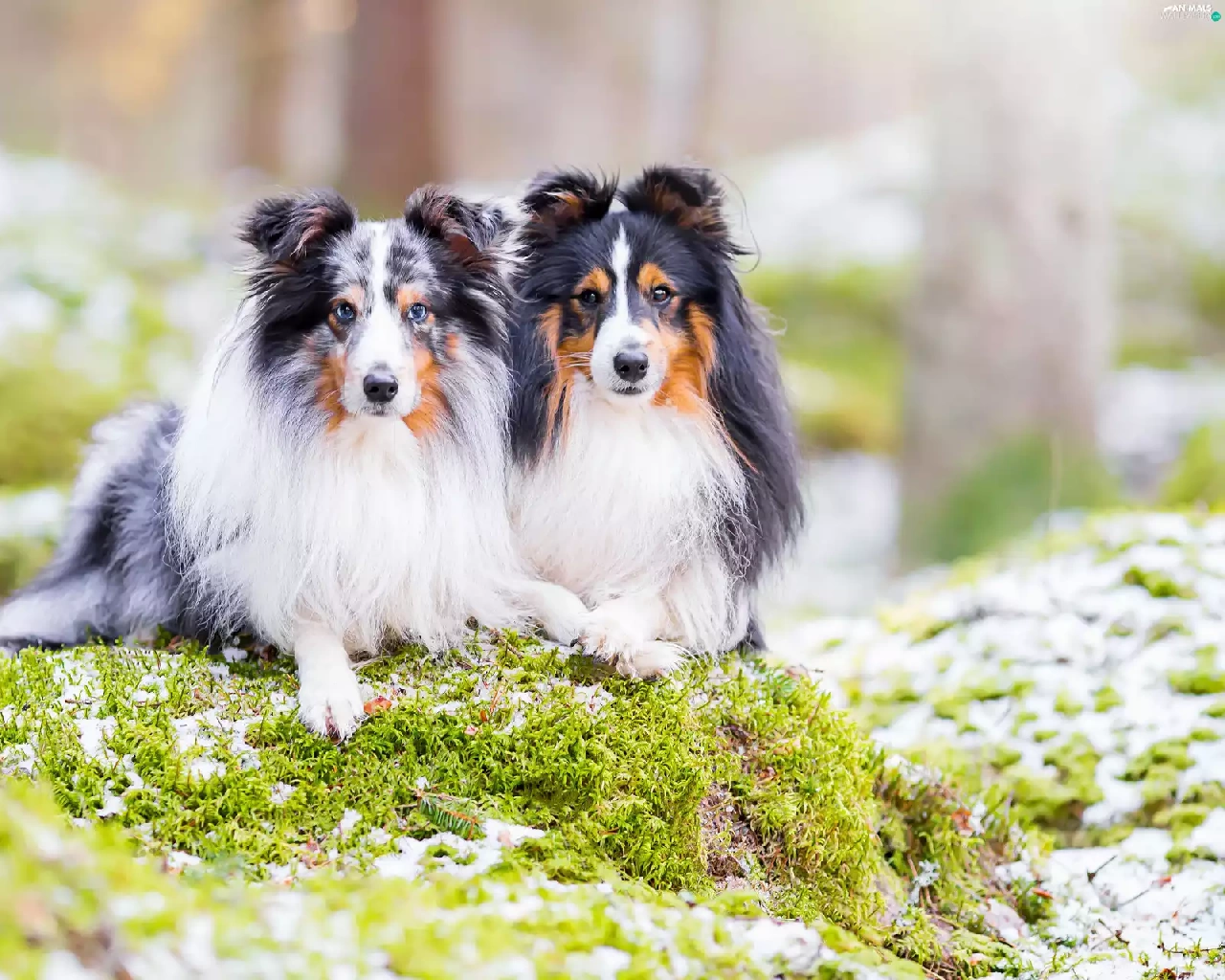 Moss, snow, Dogs, Shetland Sheepdogs, Two cars