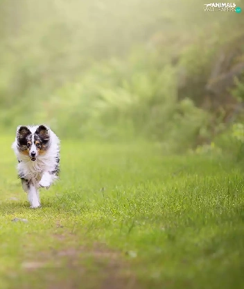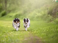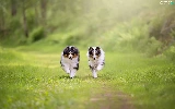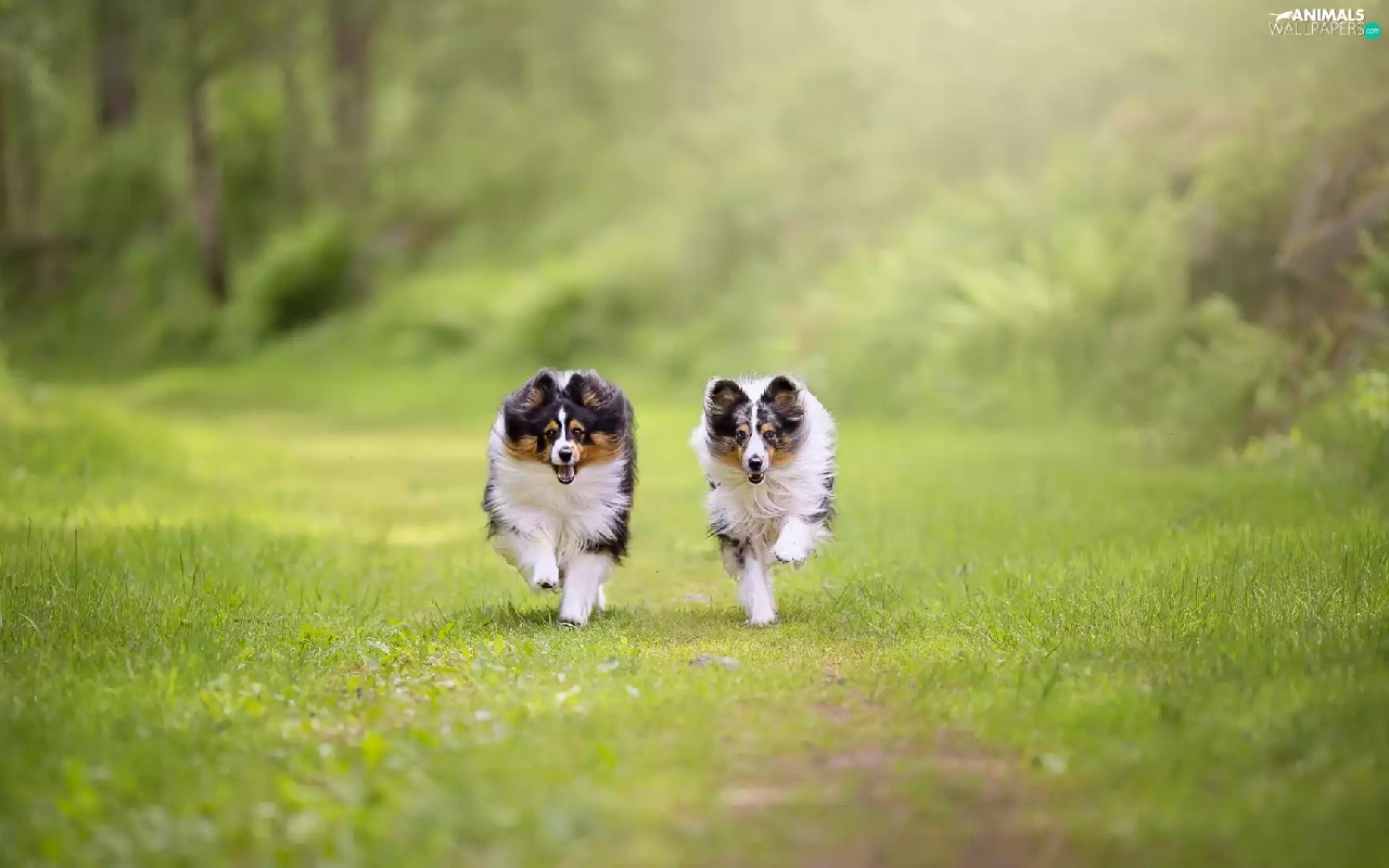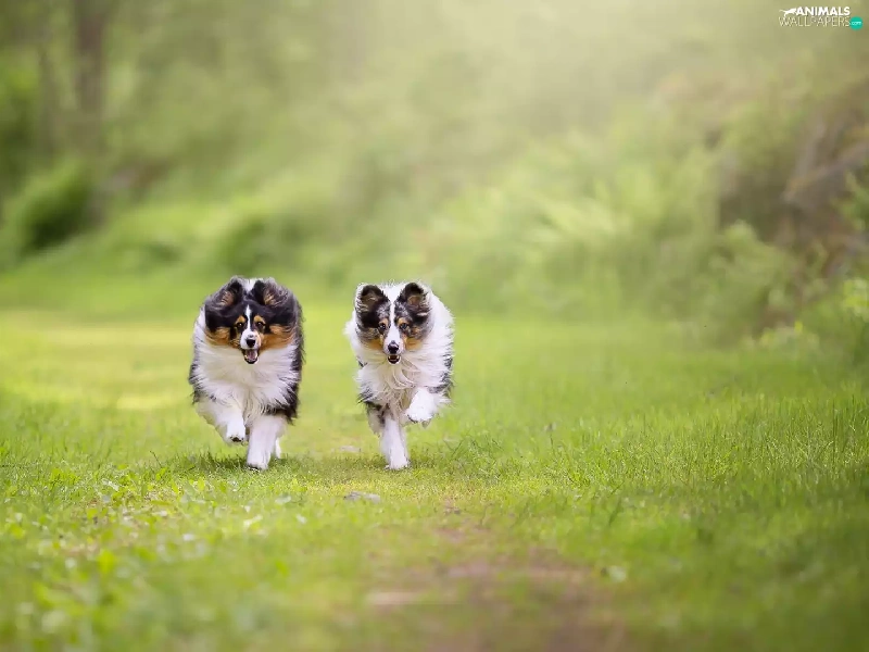 Dogs, Shetland Sheepdogs, grass, stretching