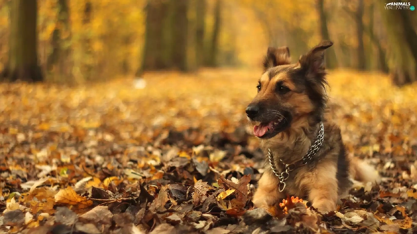 mongrel, bitch, dry, Shila, dog, autumn, Leaf