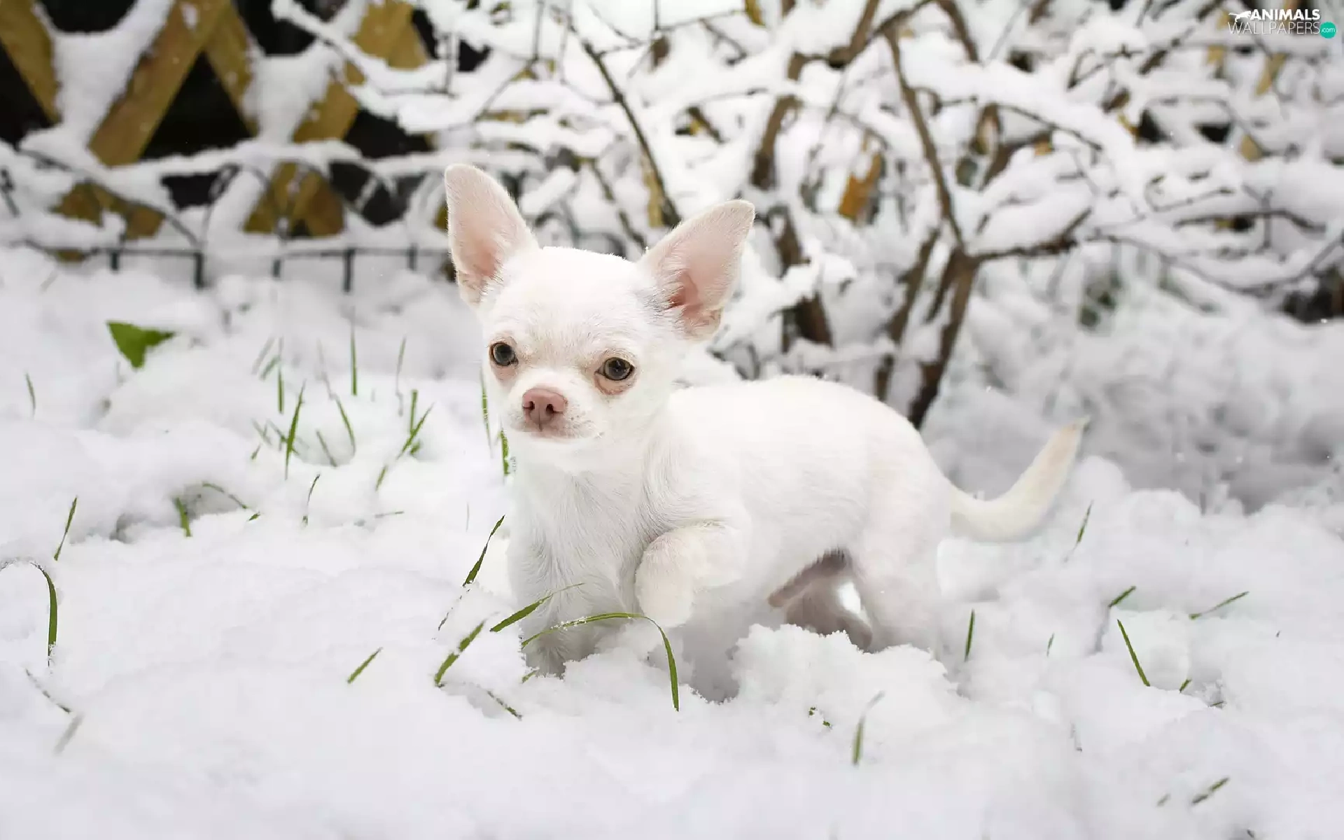 dog, snow, Bush, Short-haired Chihuahua