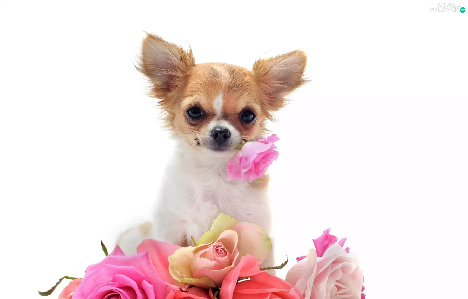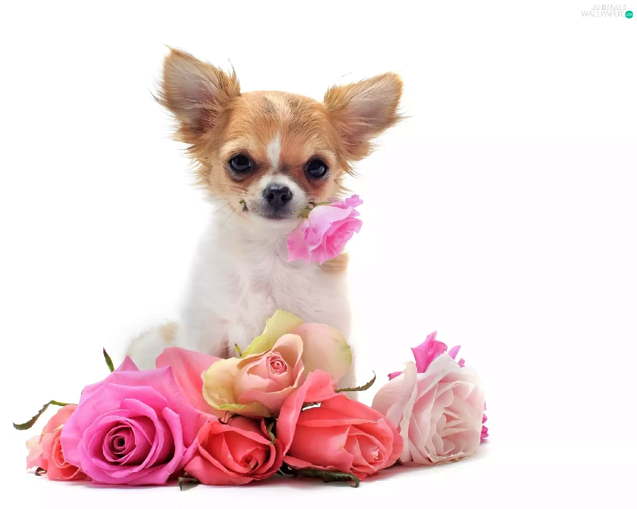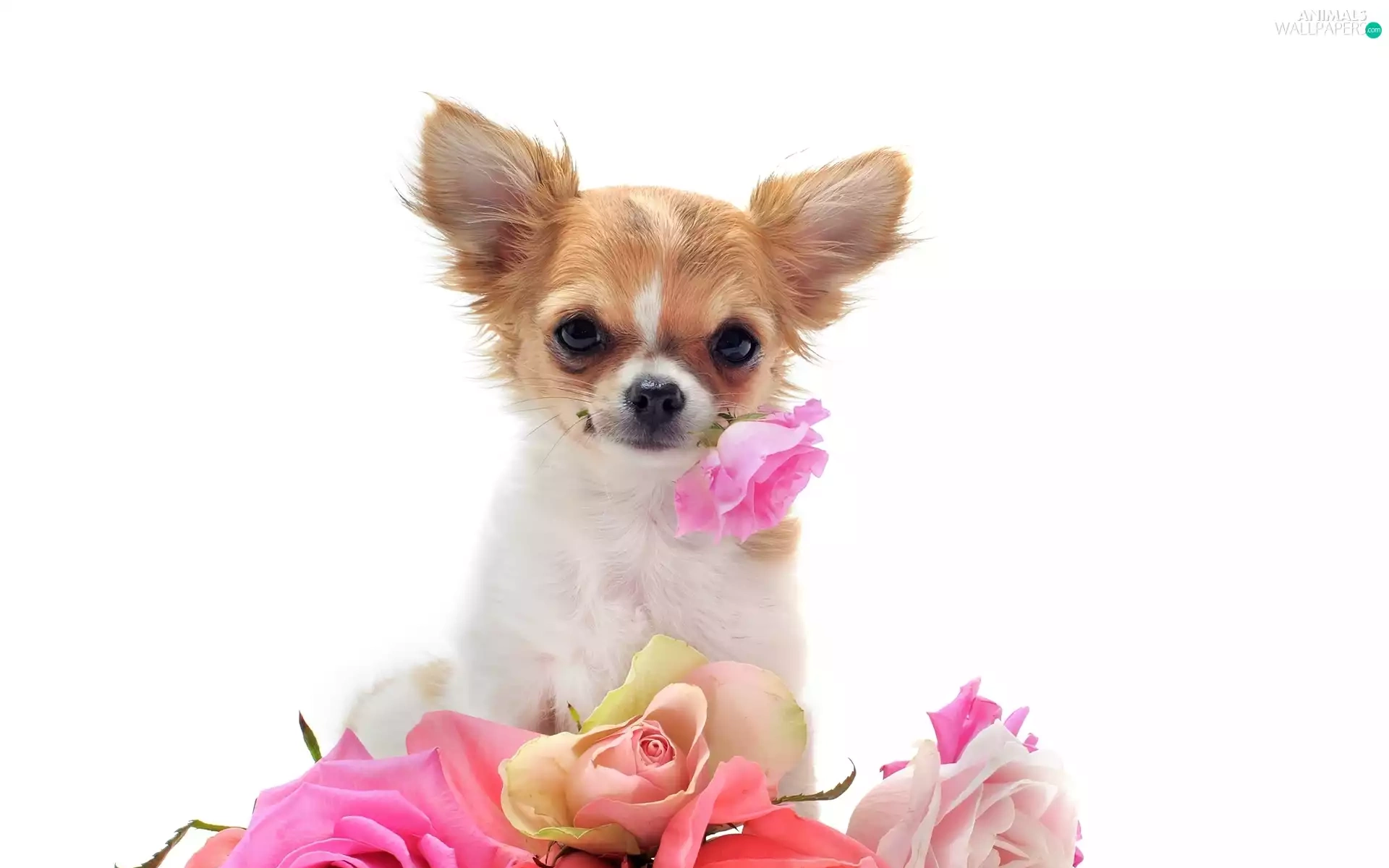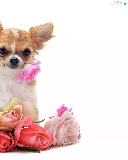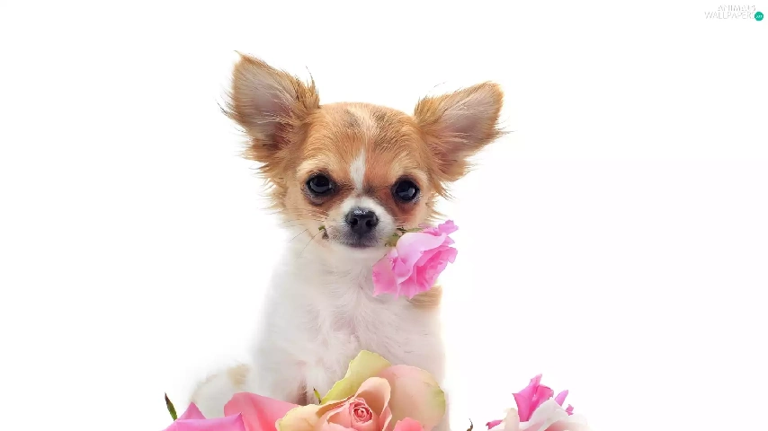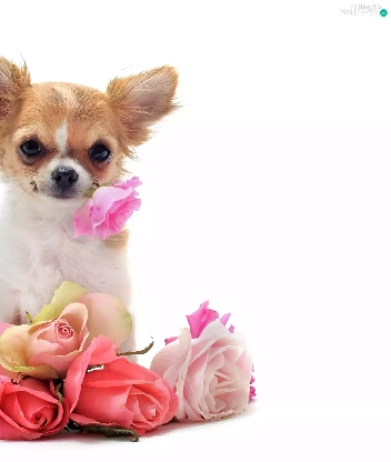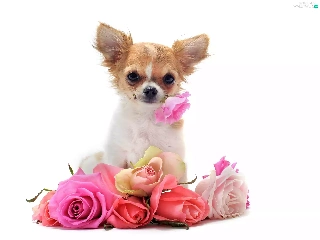 roses, little dog, showered