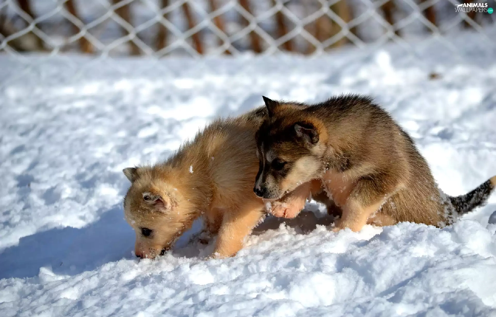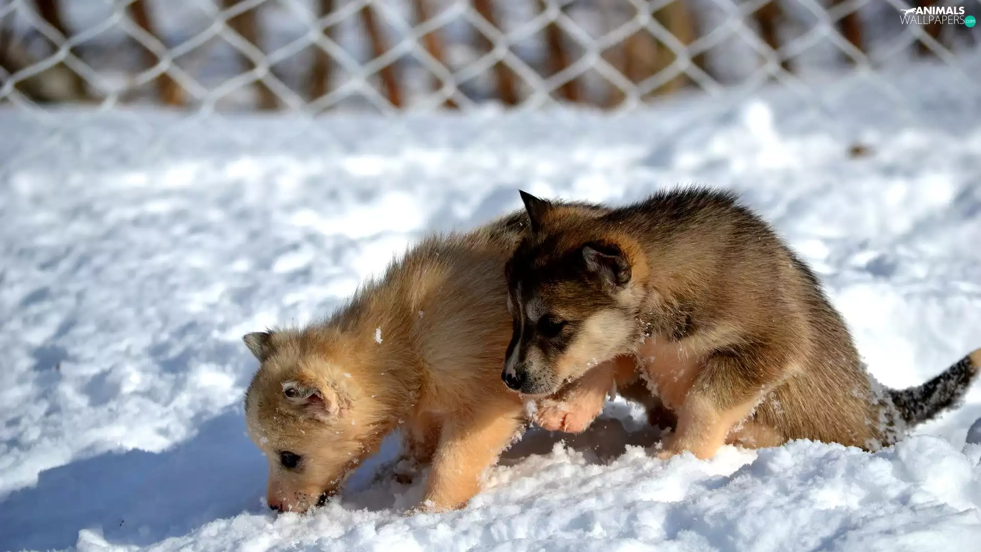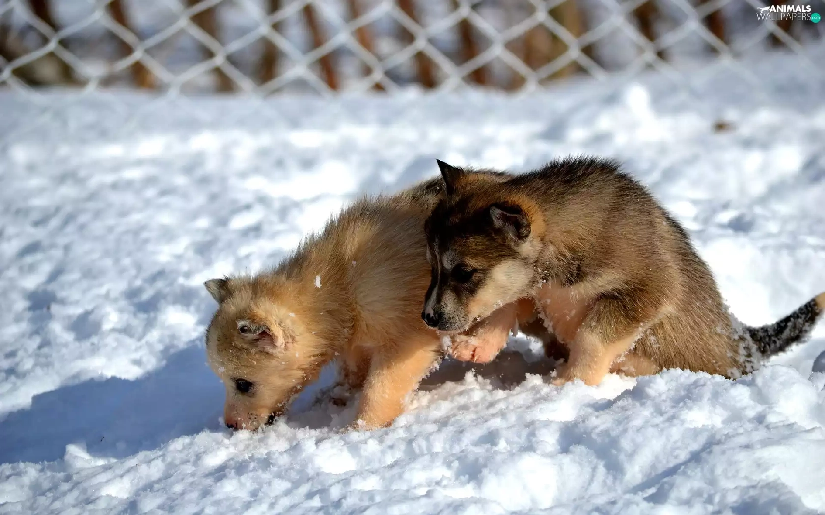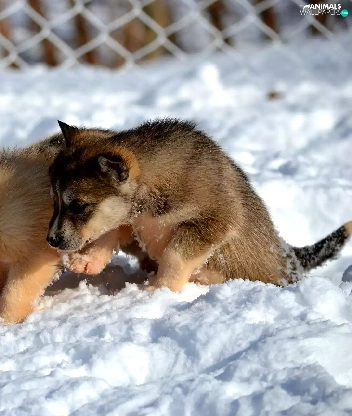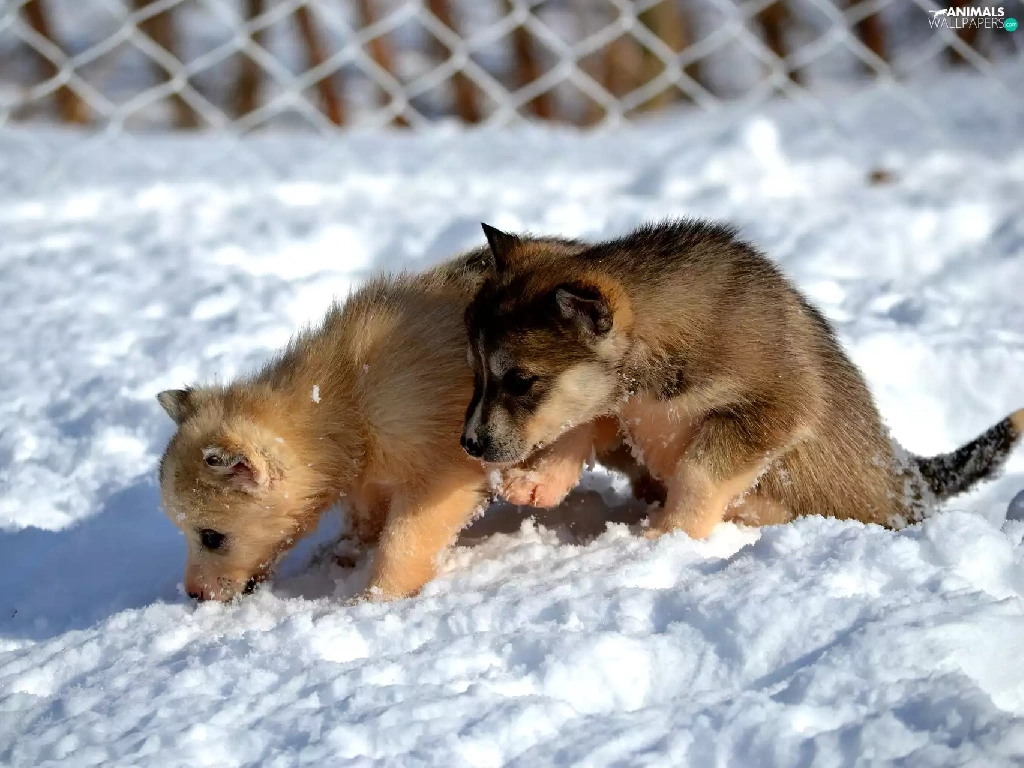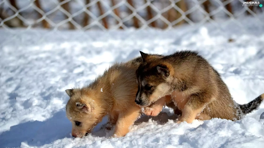 Dogs, Siberian Husky, snow, puppies