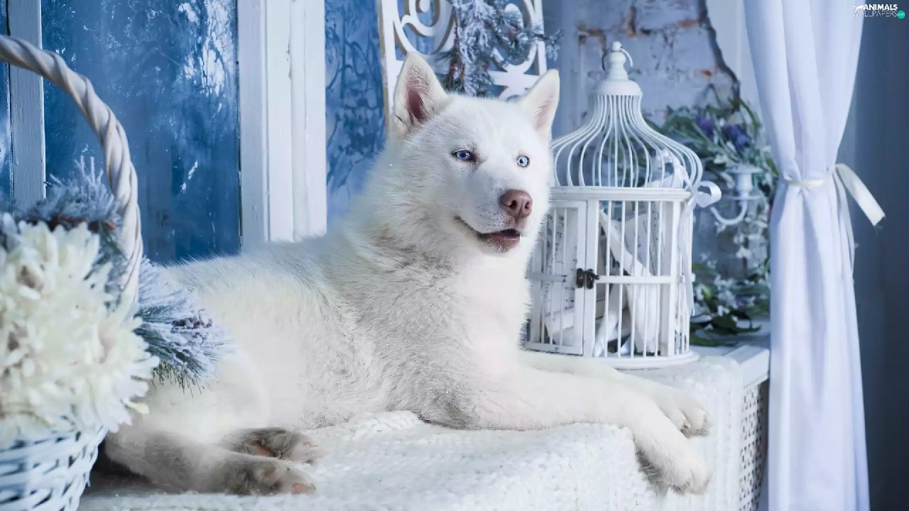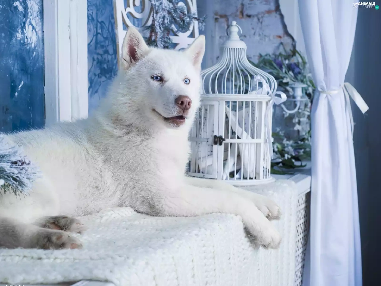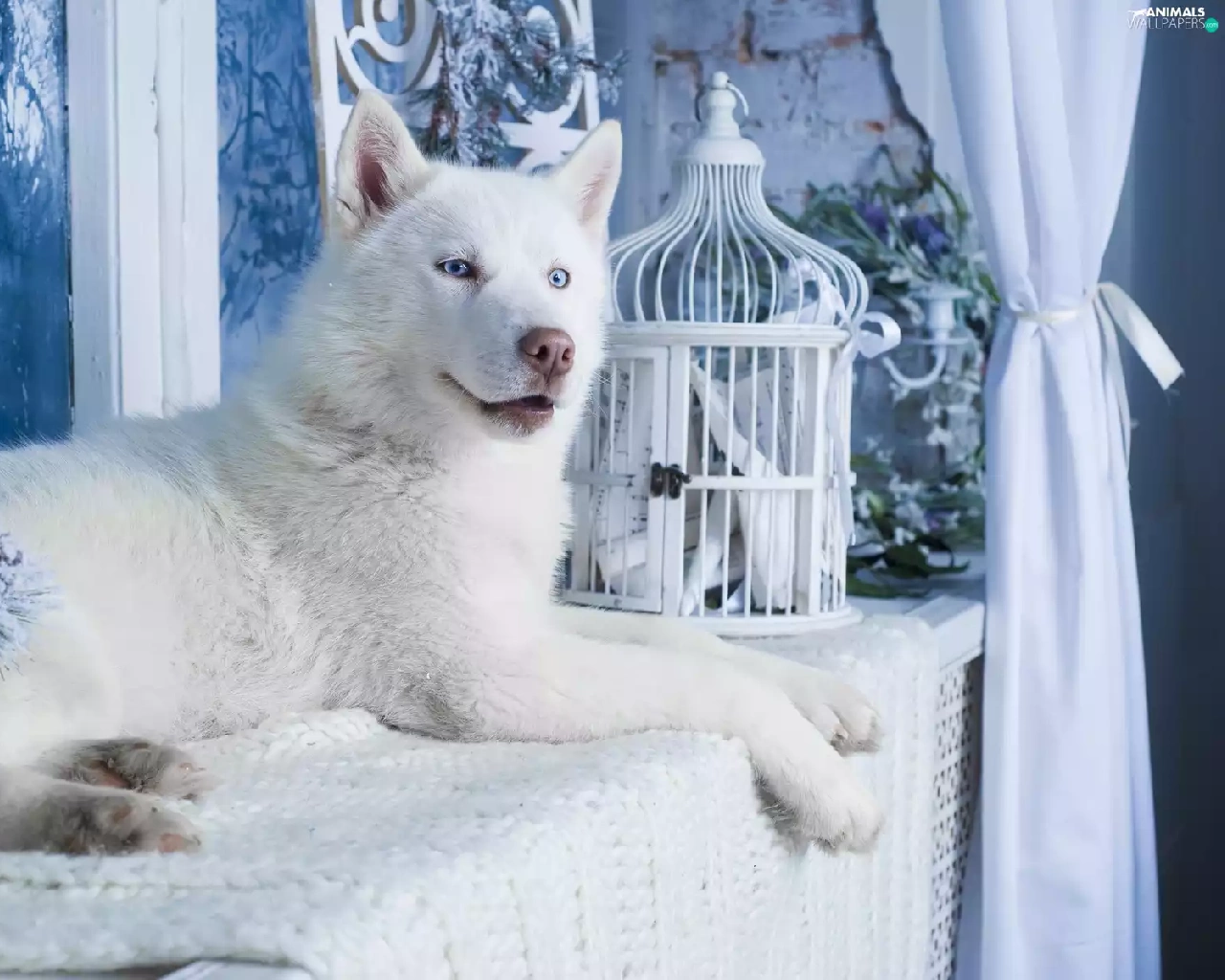 White, Husky, dog, Siberian