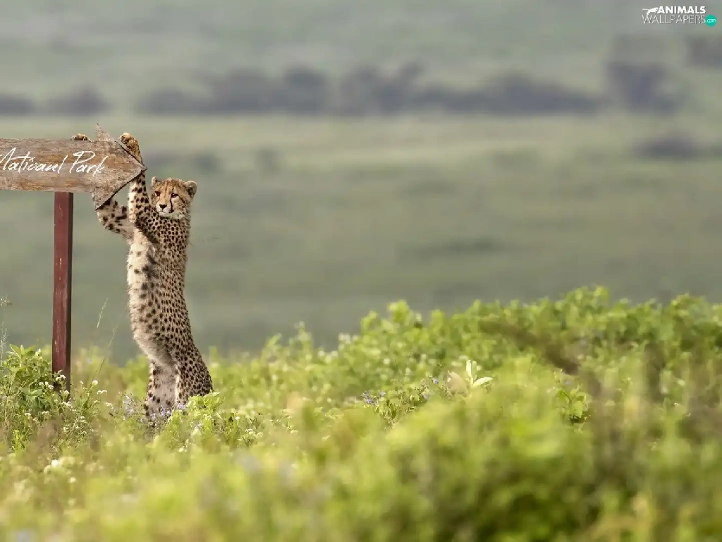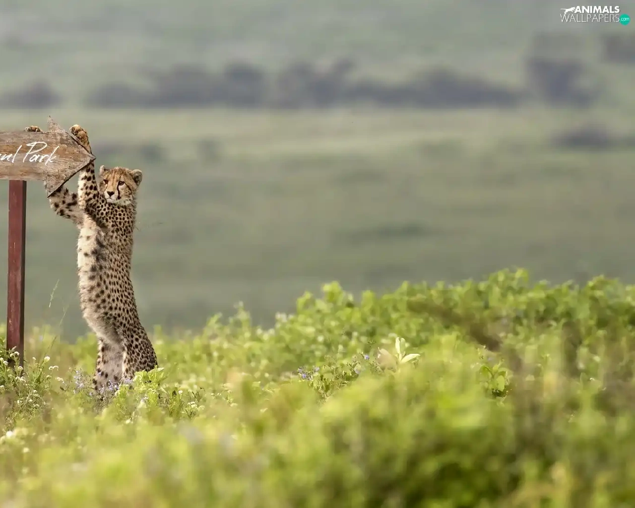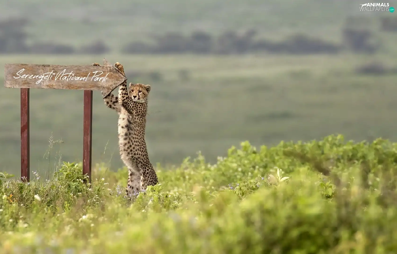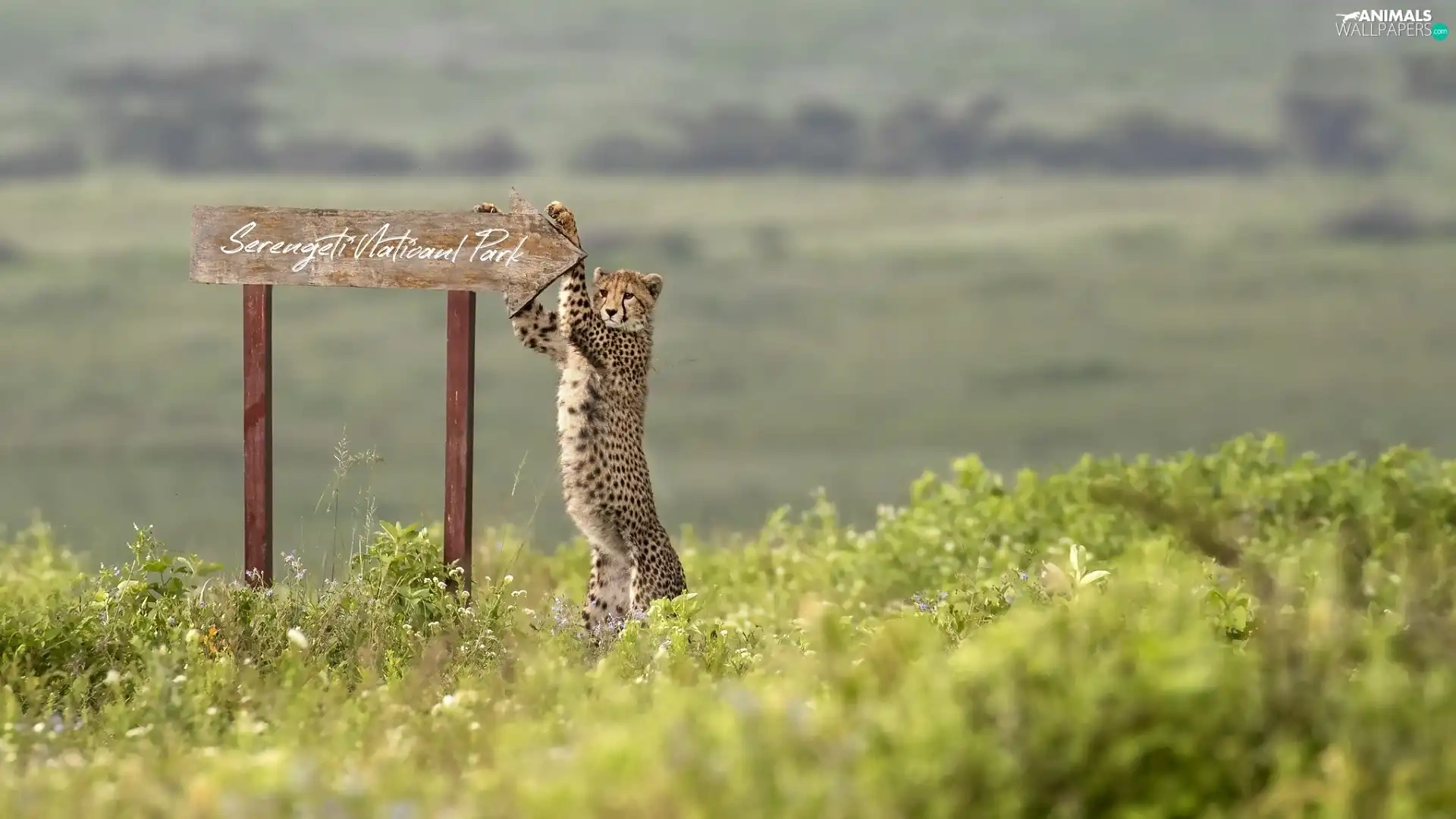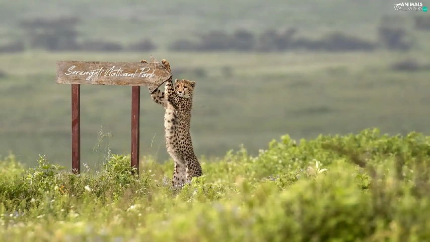 sign-post, Tanzania, Serengeti National Park, plate, Africa, text, Cheetah