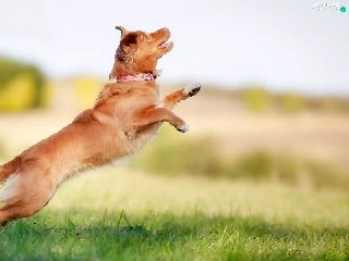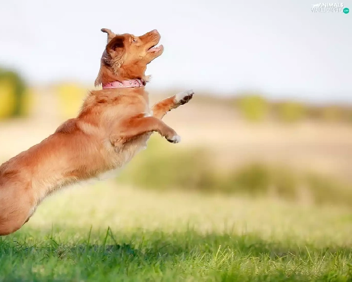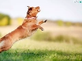 Meadow, dog, mongrel, skipping