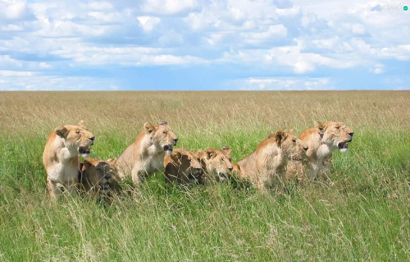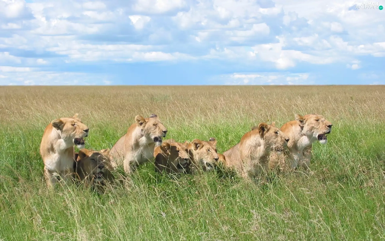 Sky, lions, grass