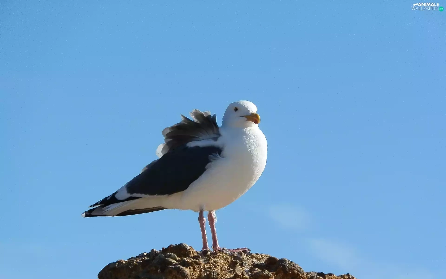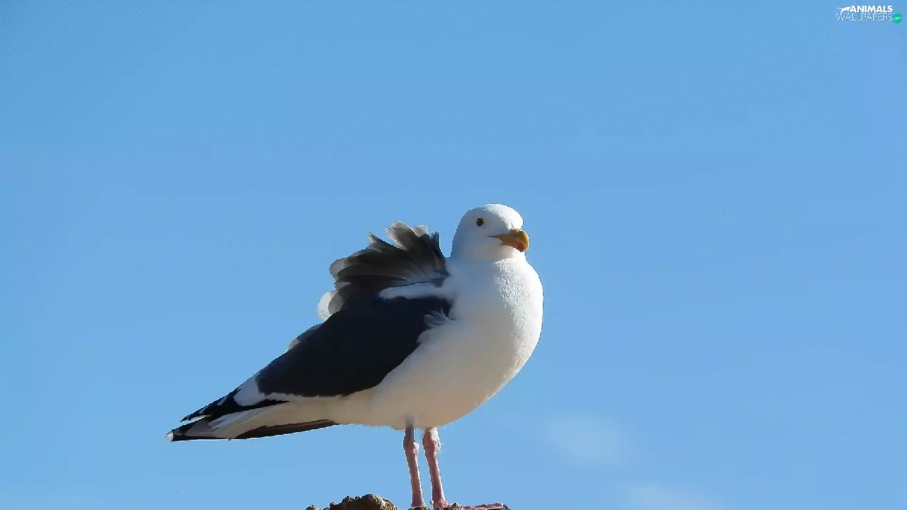Sky, seagull, Rocks