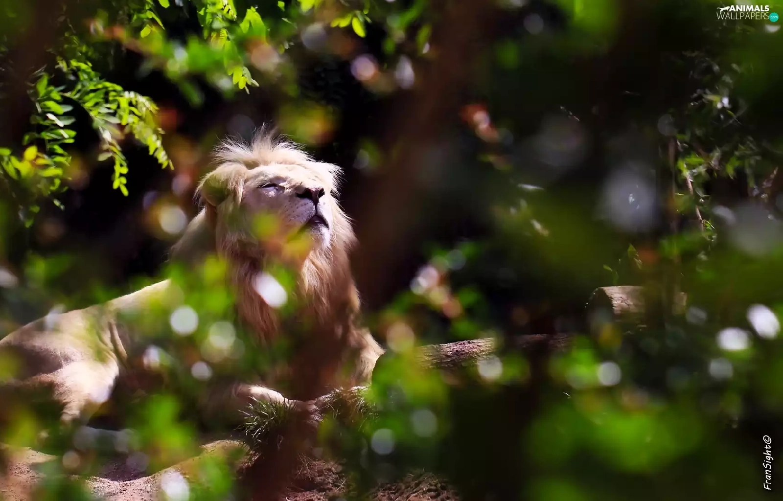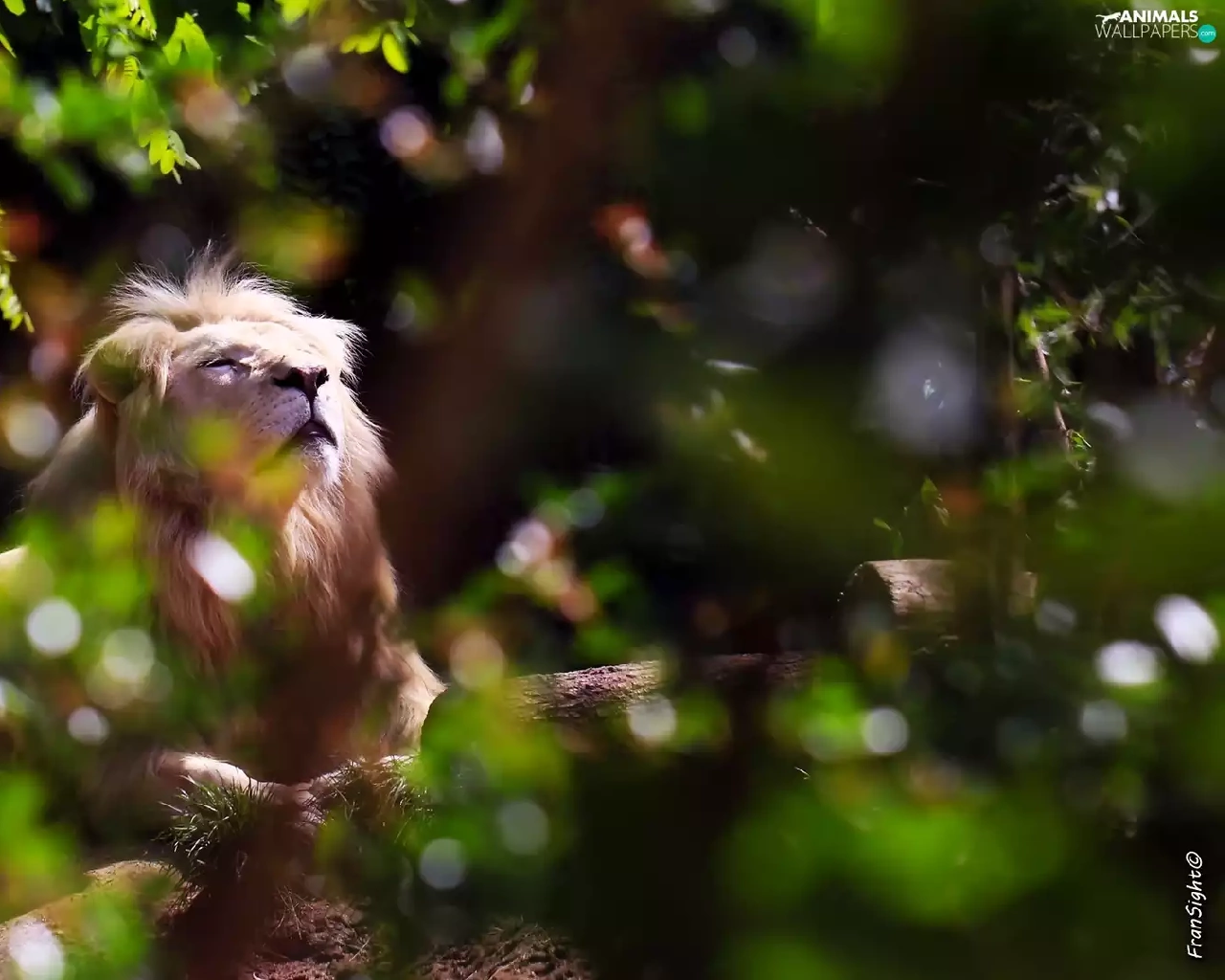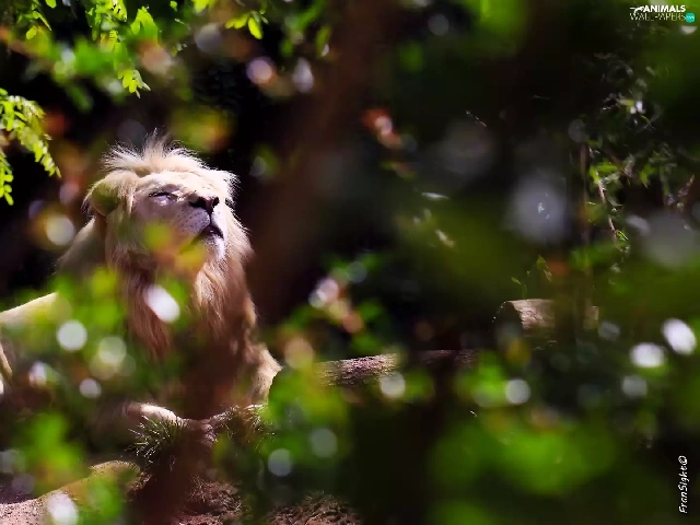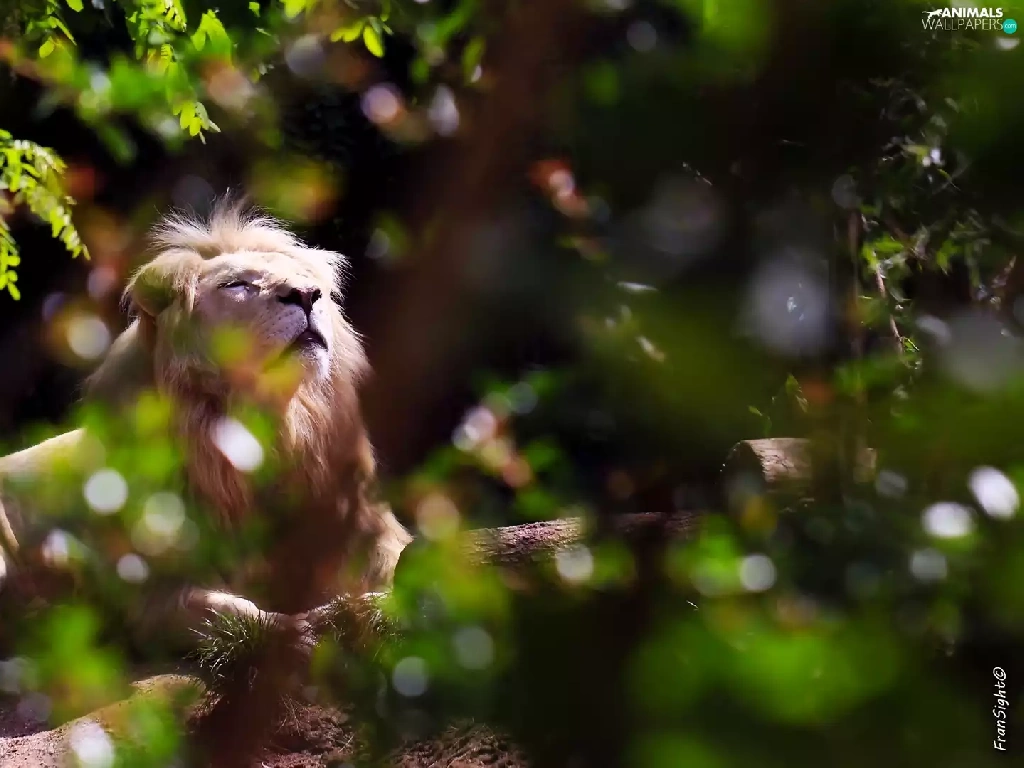 White Lion, scrub, Zoo, light breaking through sky