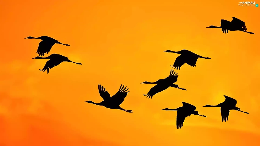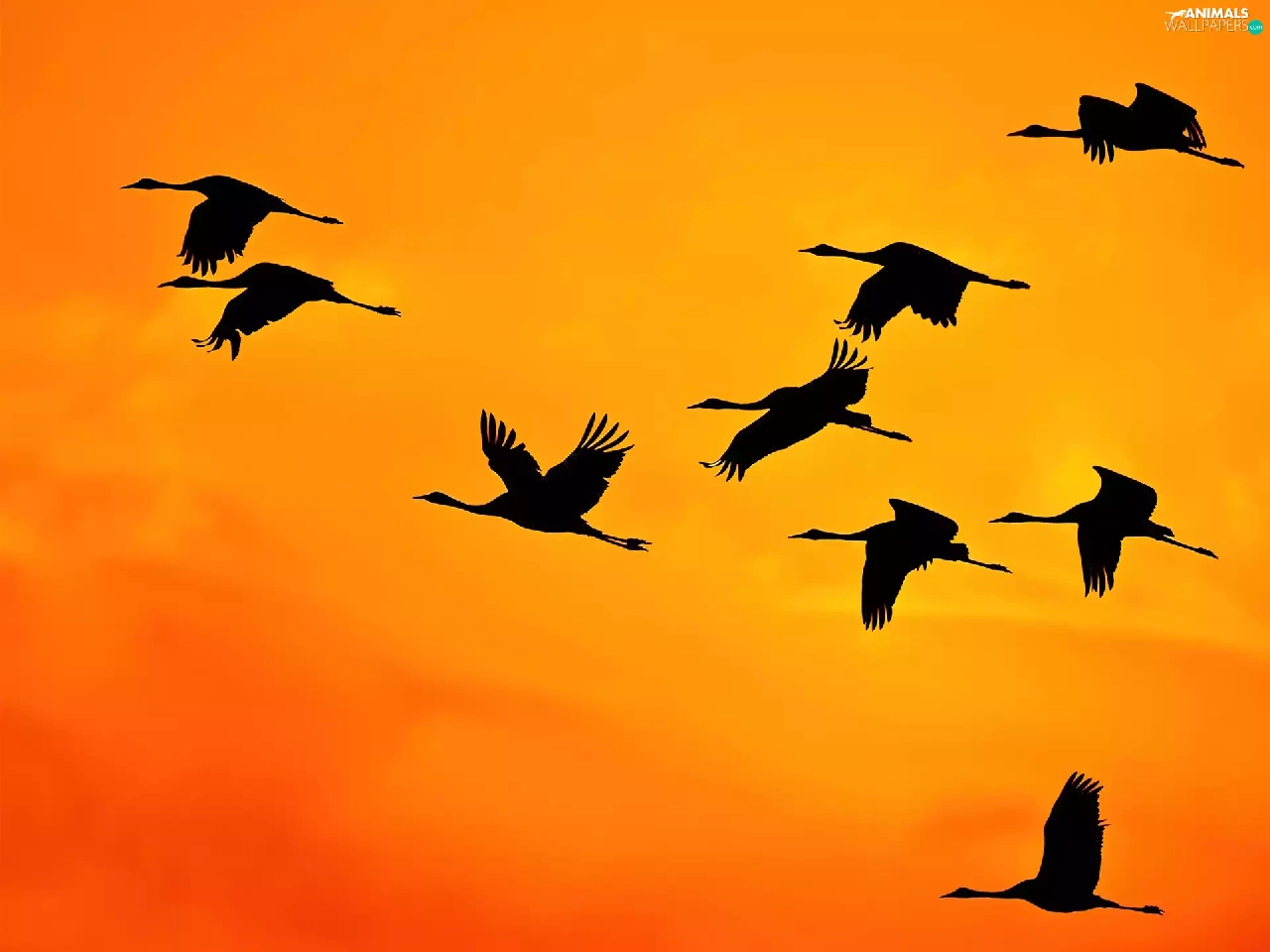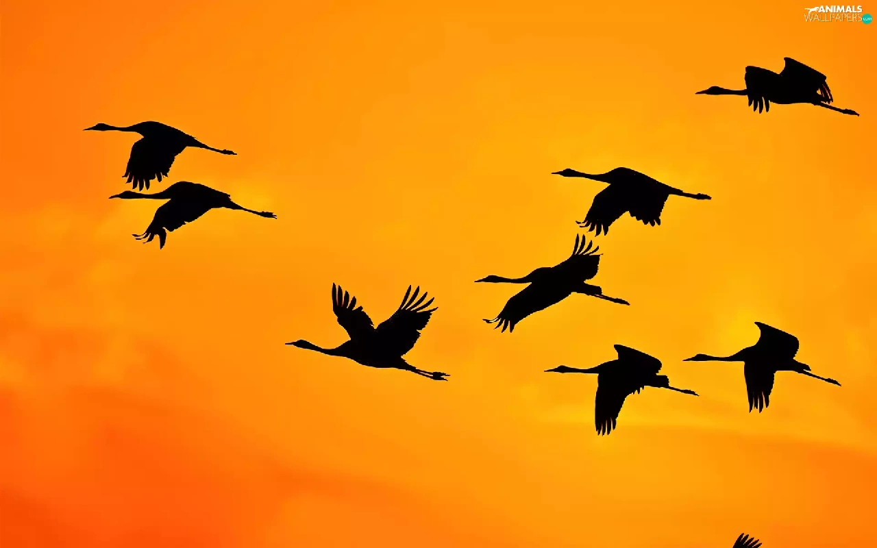 Storks, west, sun, Sky