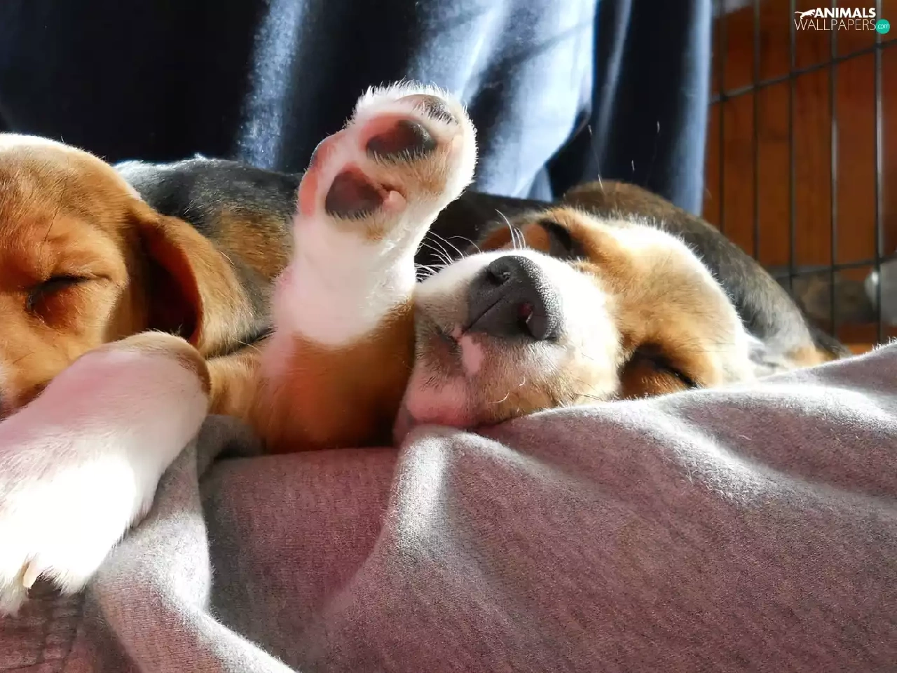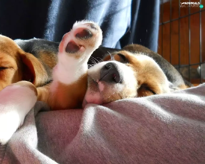puppies, Two cars, Sleeping