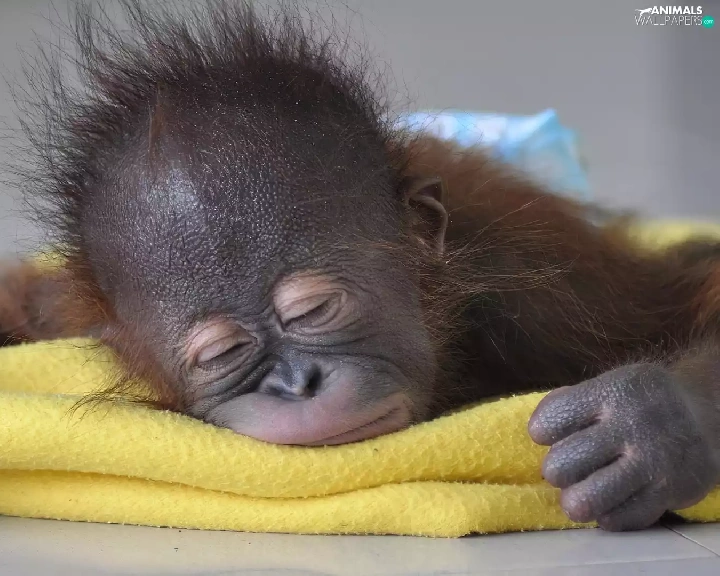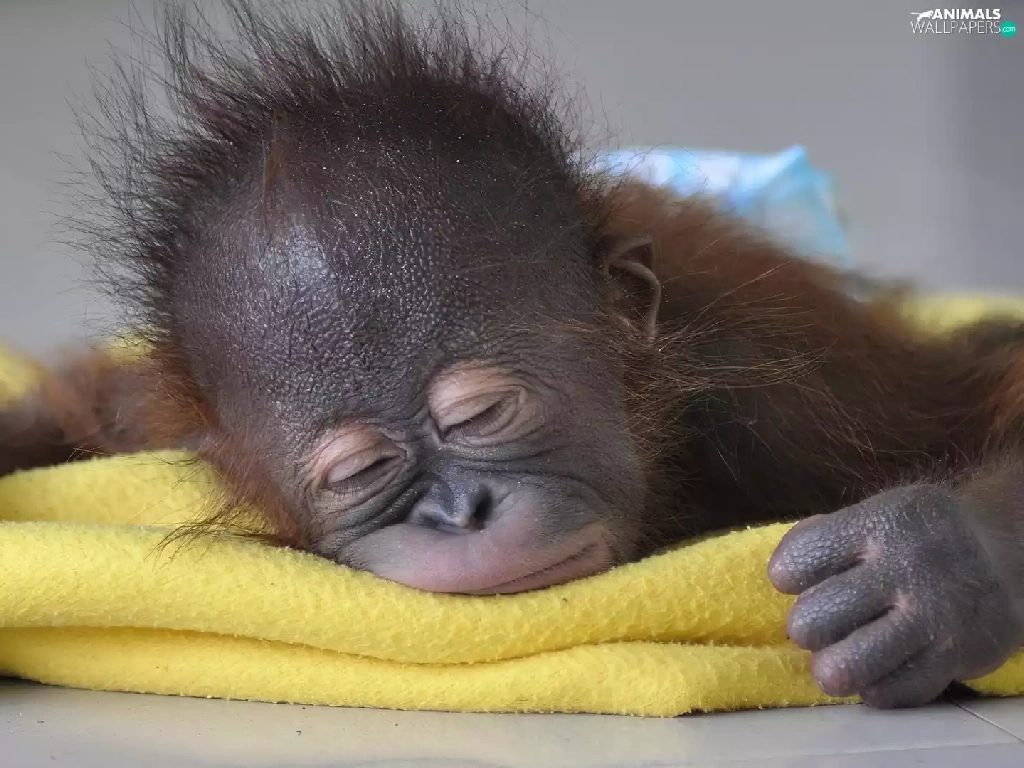 the sleeping, Yellow, Blanket, Monkey