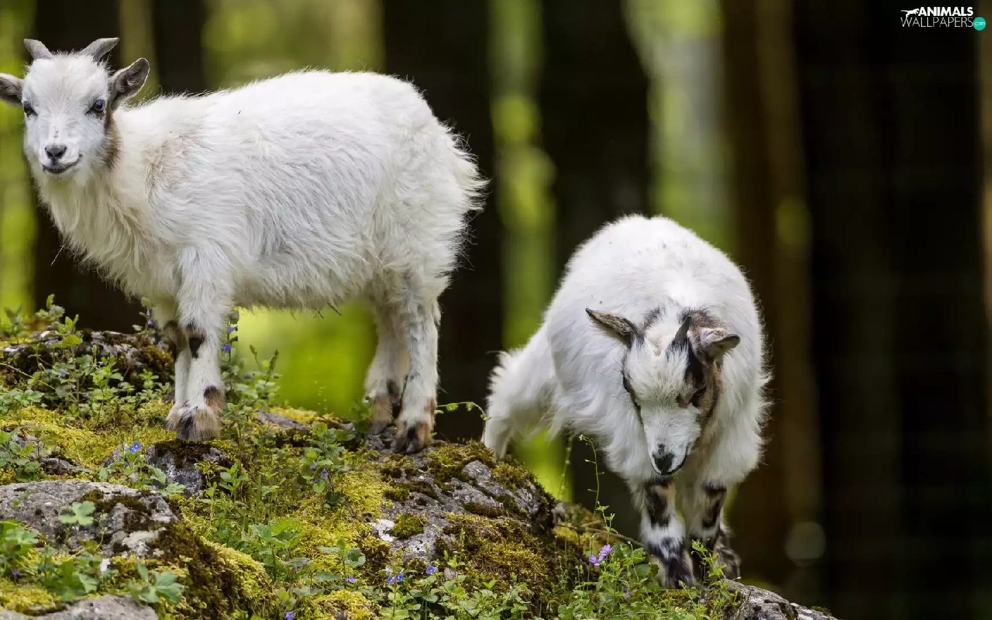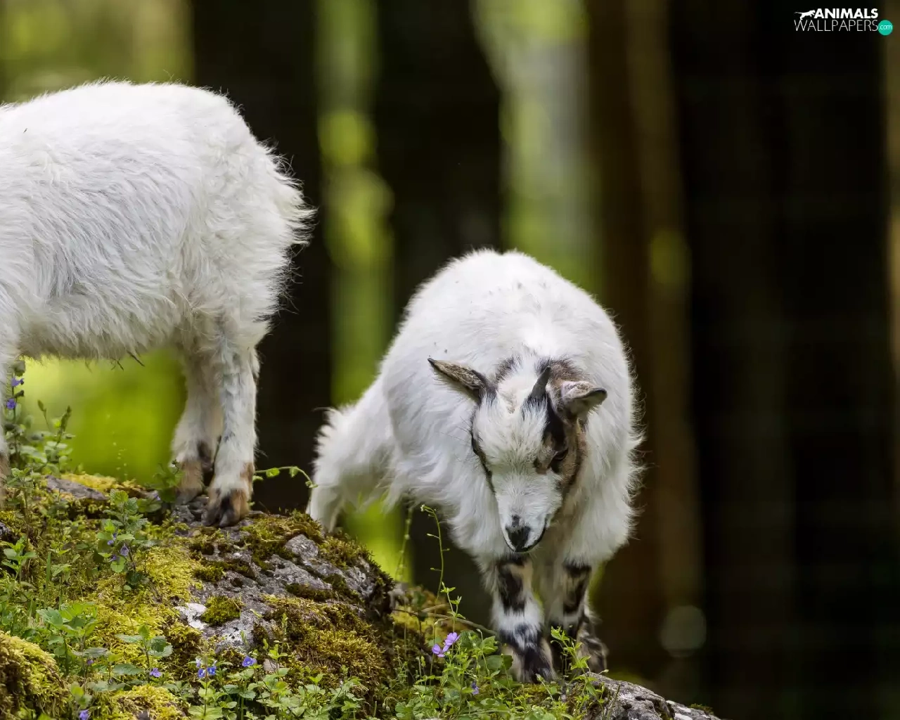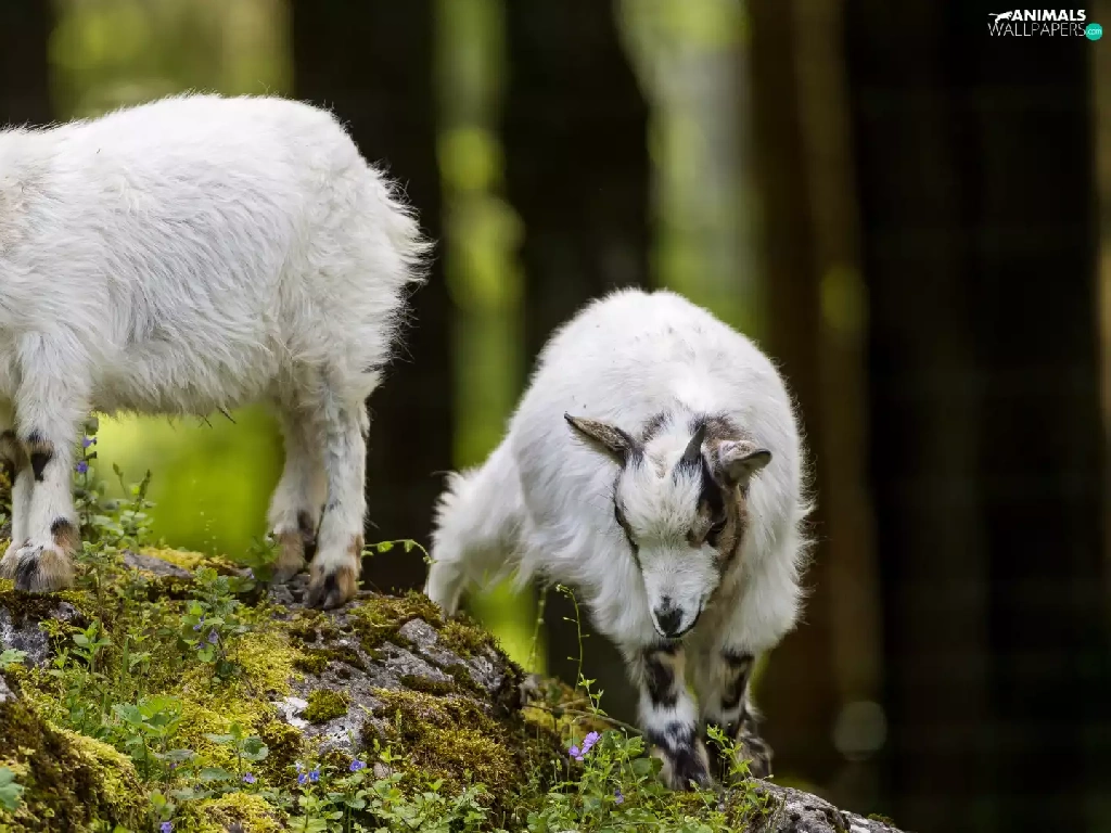 Goats, Stones, Plants, slope
