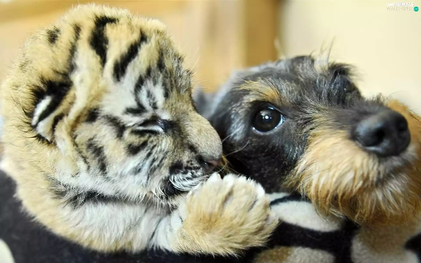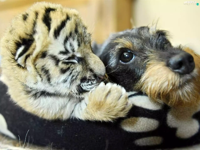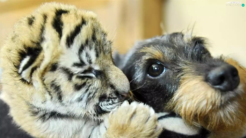 dog, tiger, friends, small
