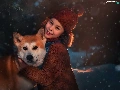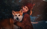 dog, Shiba inu, Smile, Hat, girl