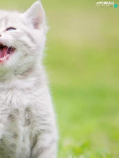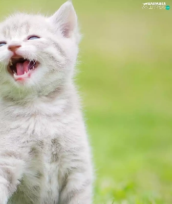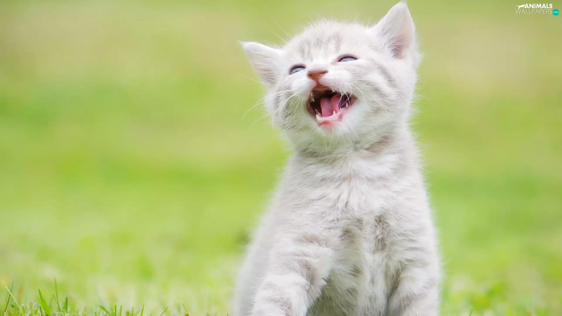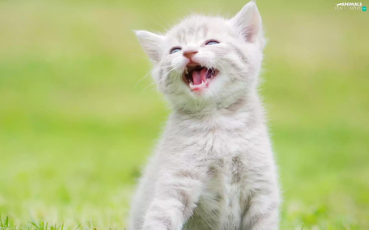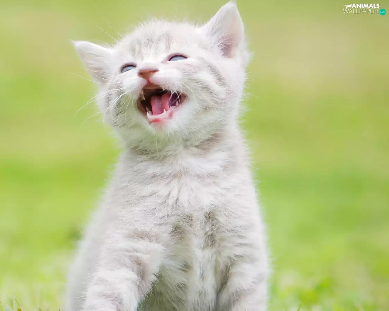 tooth, kitten, grass, Smile, small, Tounge, blur