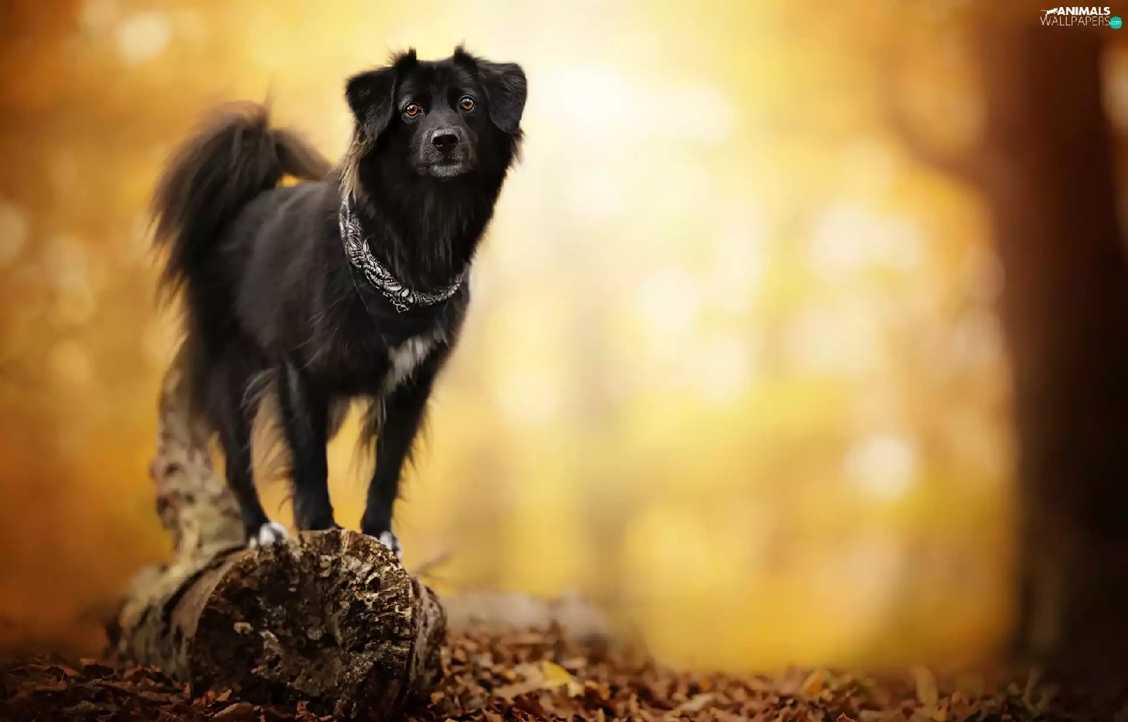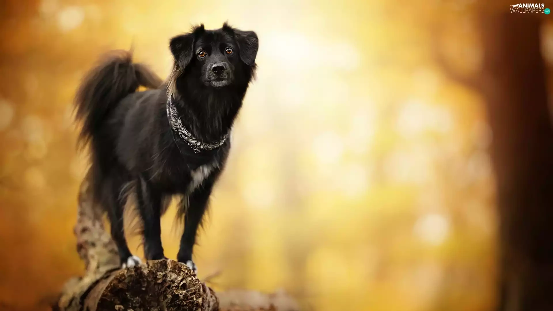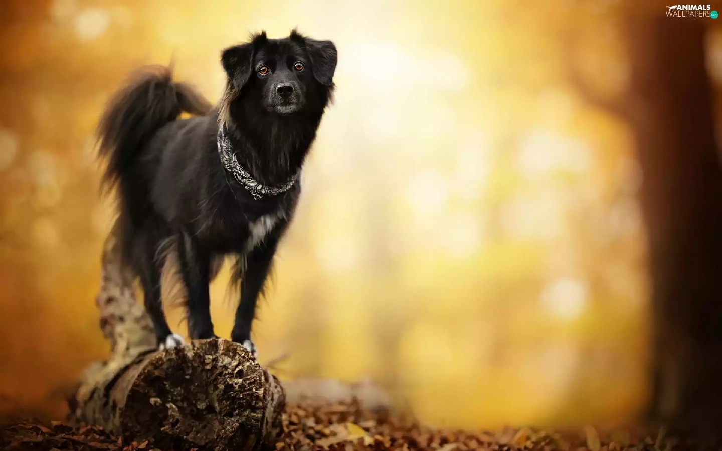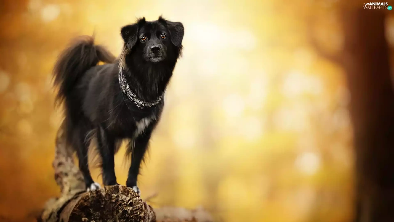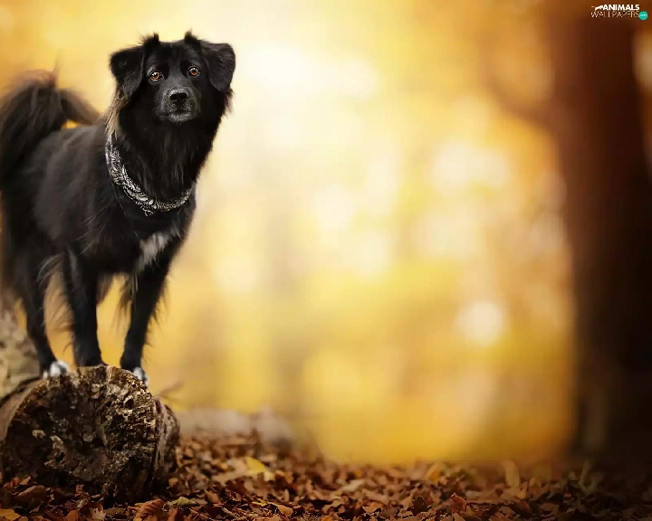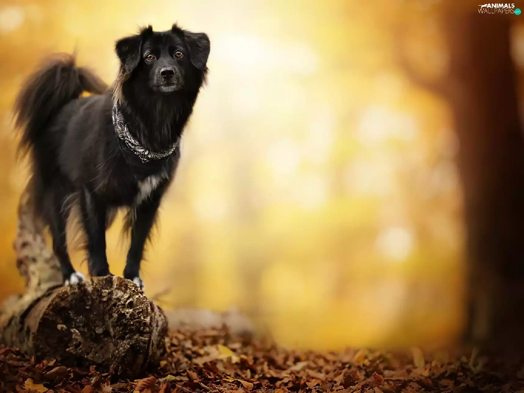 blurry background, dog, snag