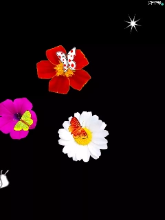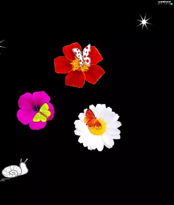 snail, flowers, butterfly