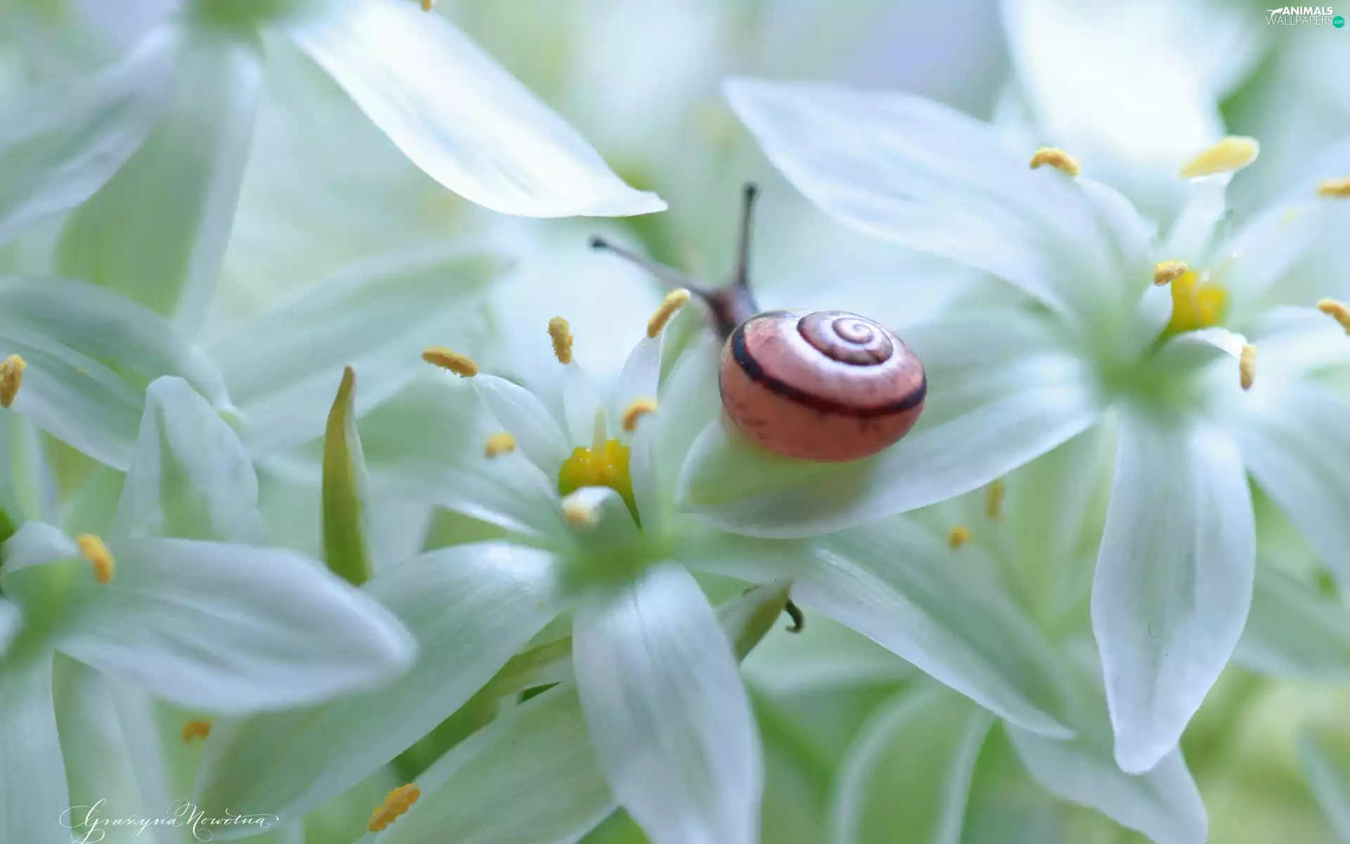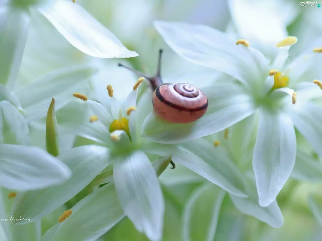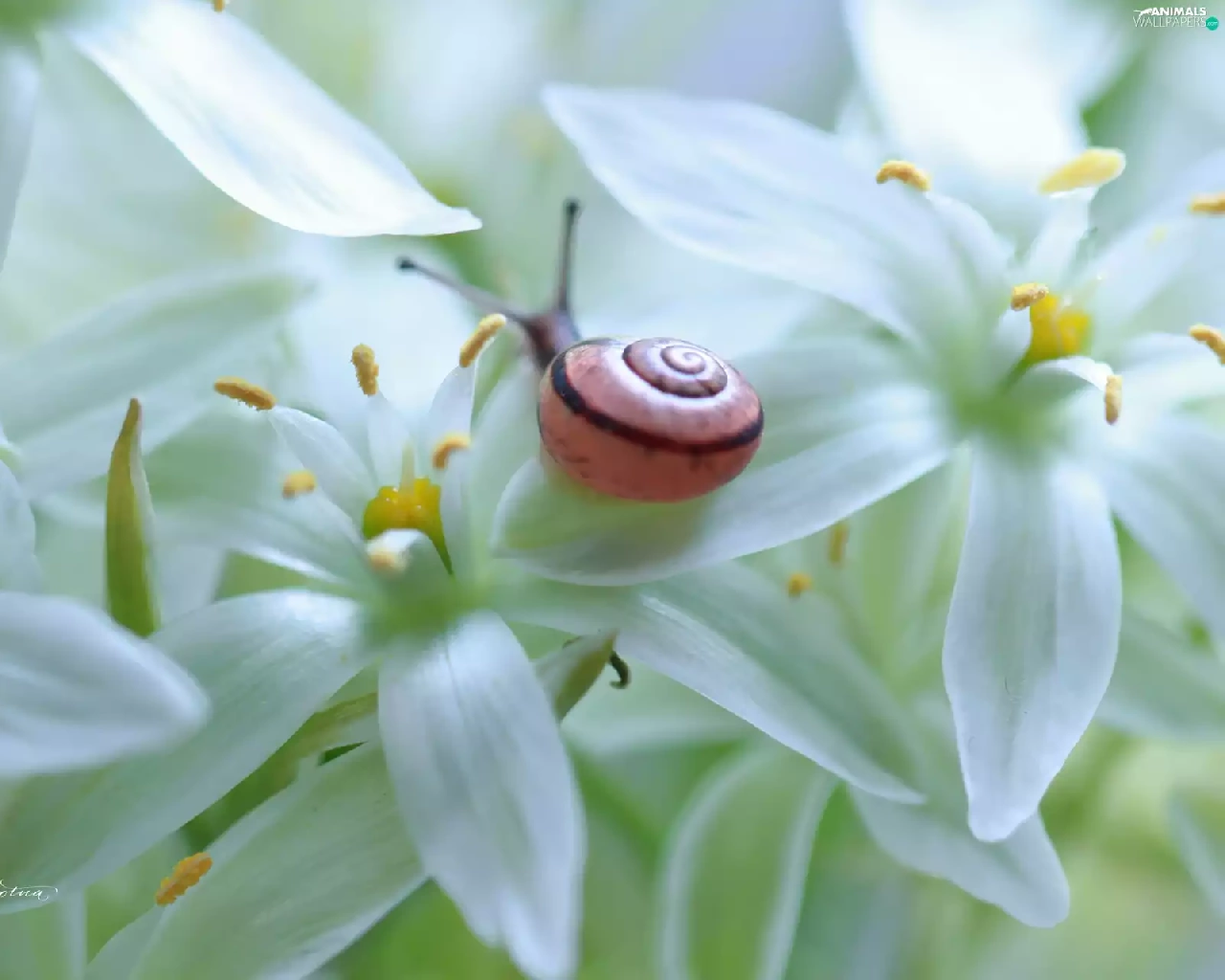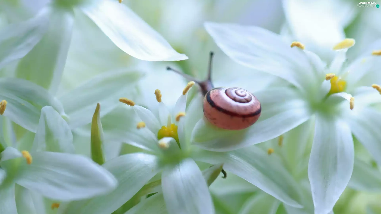 snail, White, Flowers