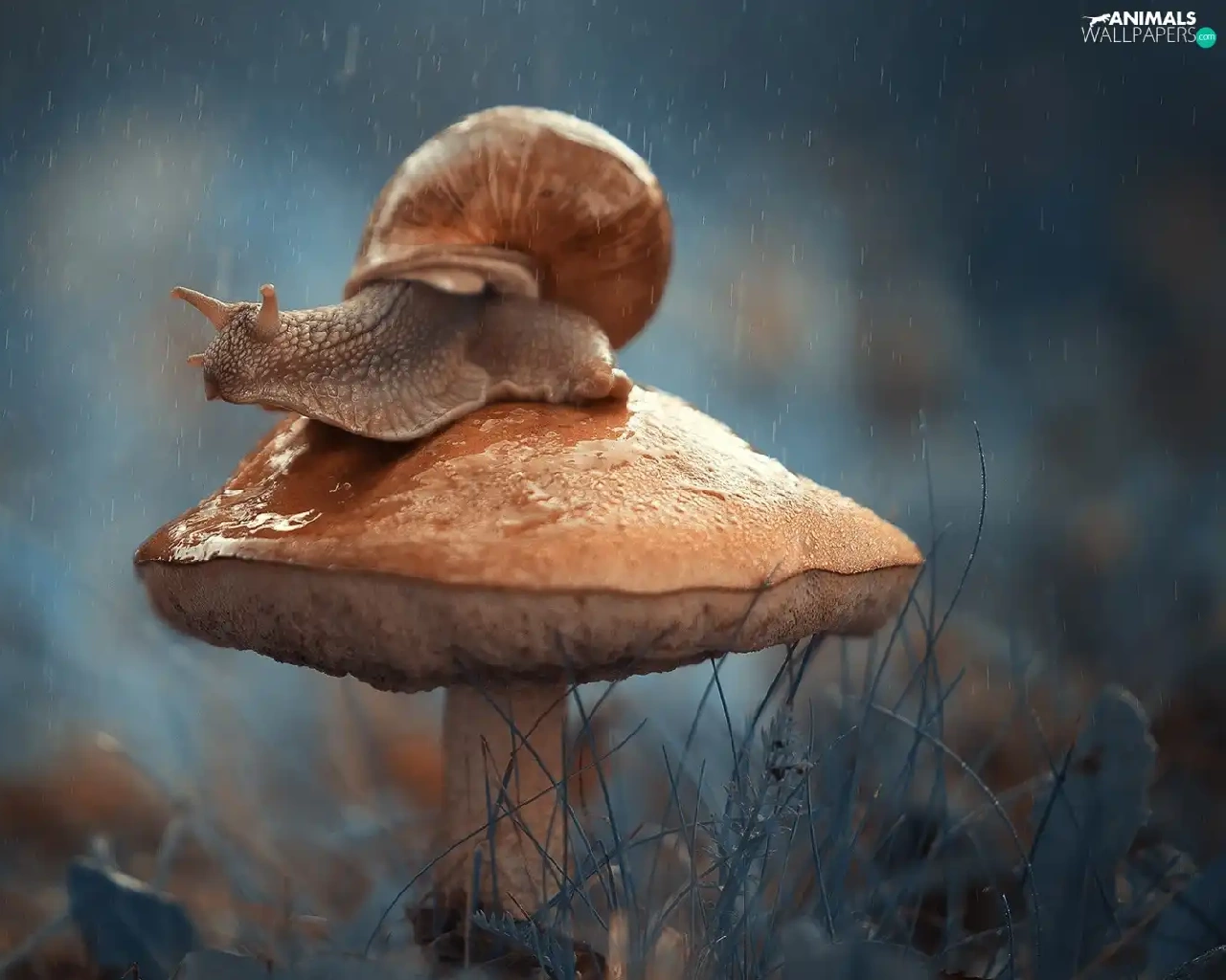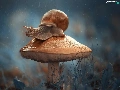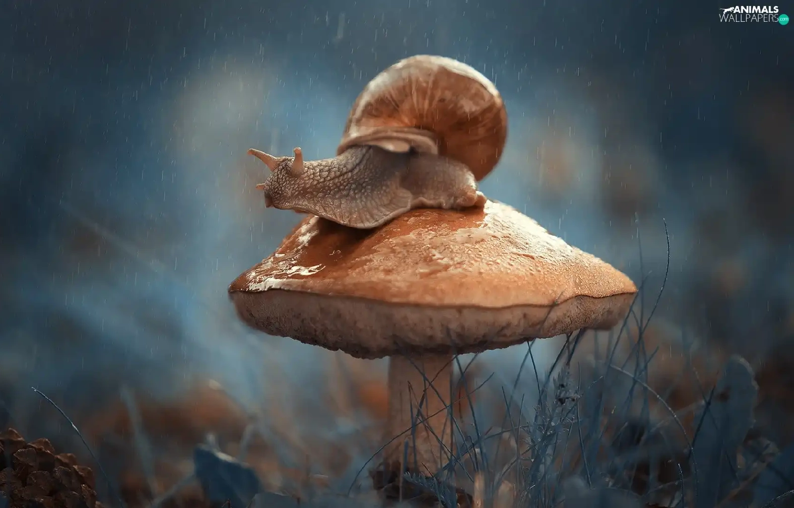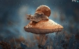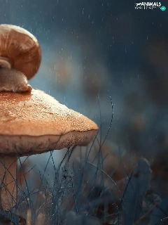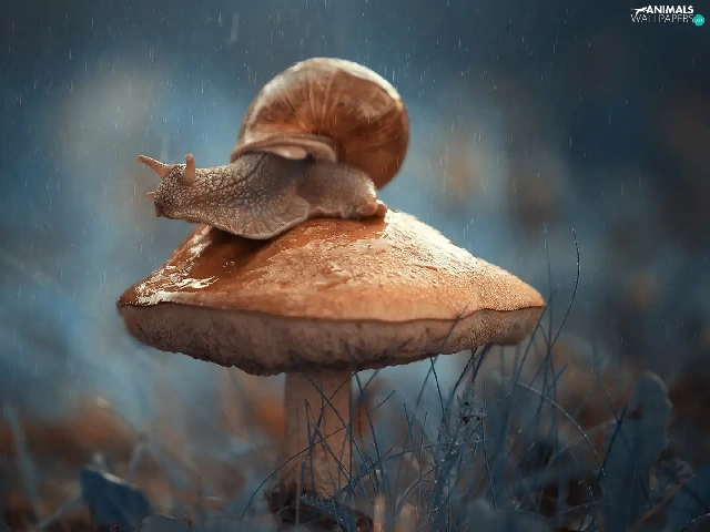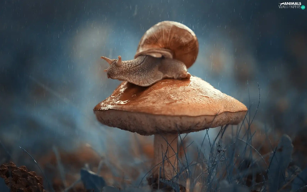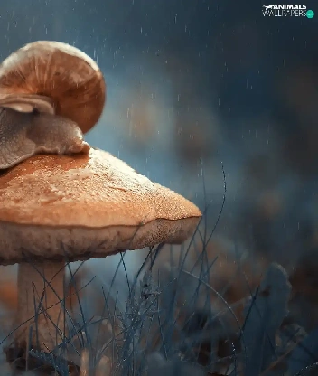 snail, Mushrooms, Rain
